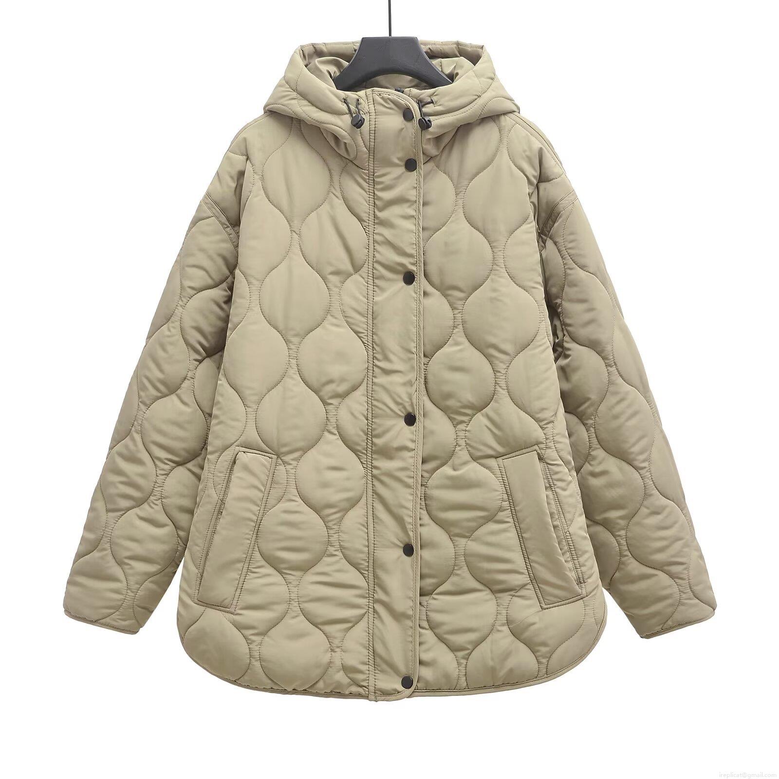 • Women's Loose Hooded Quilted Jacket Wave Pattern Cotton Padded Coat Solid Color Warm Outerwear For Winter Casual Retro Style Button Up Long Sleeve Jacket