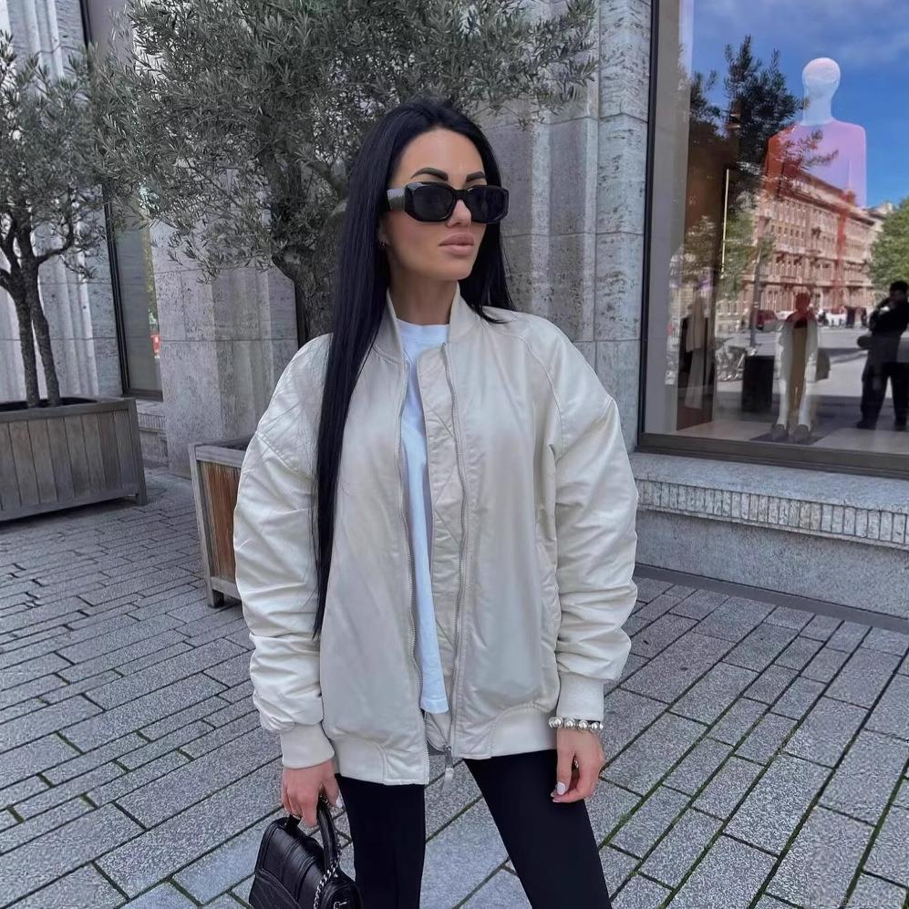 • Women's Loose MA-1 Flight Bomber Jacket Padded Cotton Coat With Pocket Windproof Casual Streetwear Outerwear For Autumn Winter