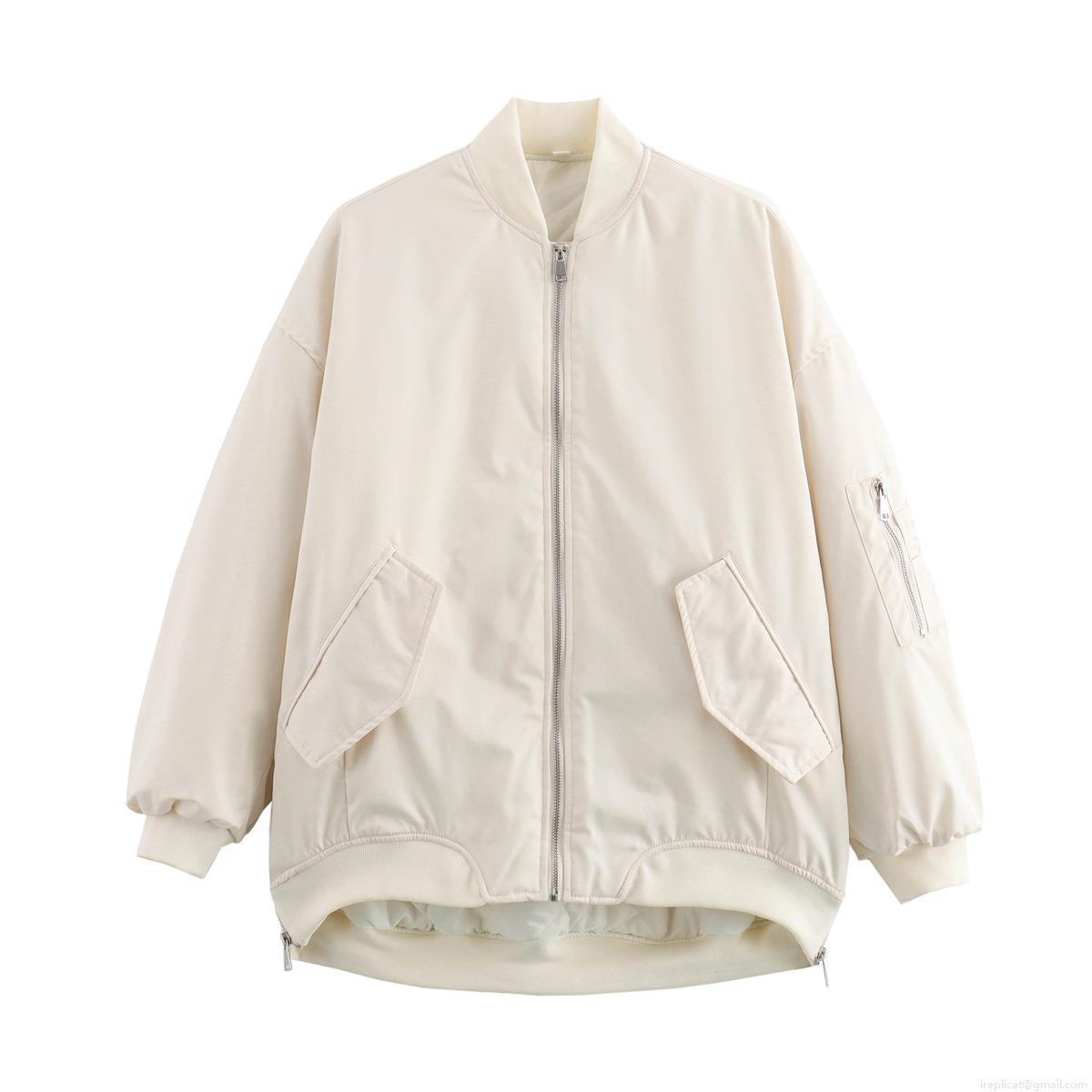 Women's Loose MA-1 Flight Bomber Jacket Padded Cotton Coat With Pocket Windproof Casual Streetwear Outerwear For Autumn Winter