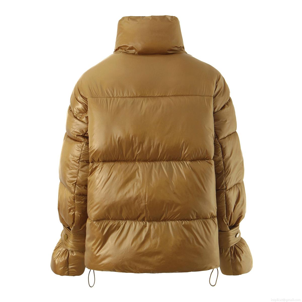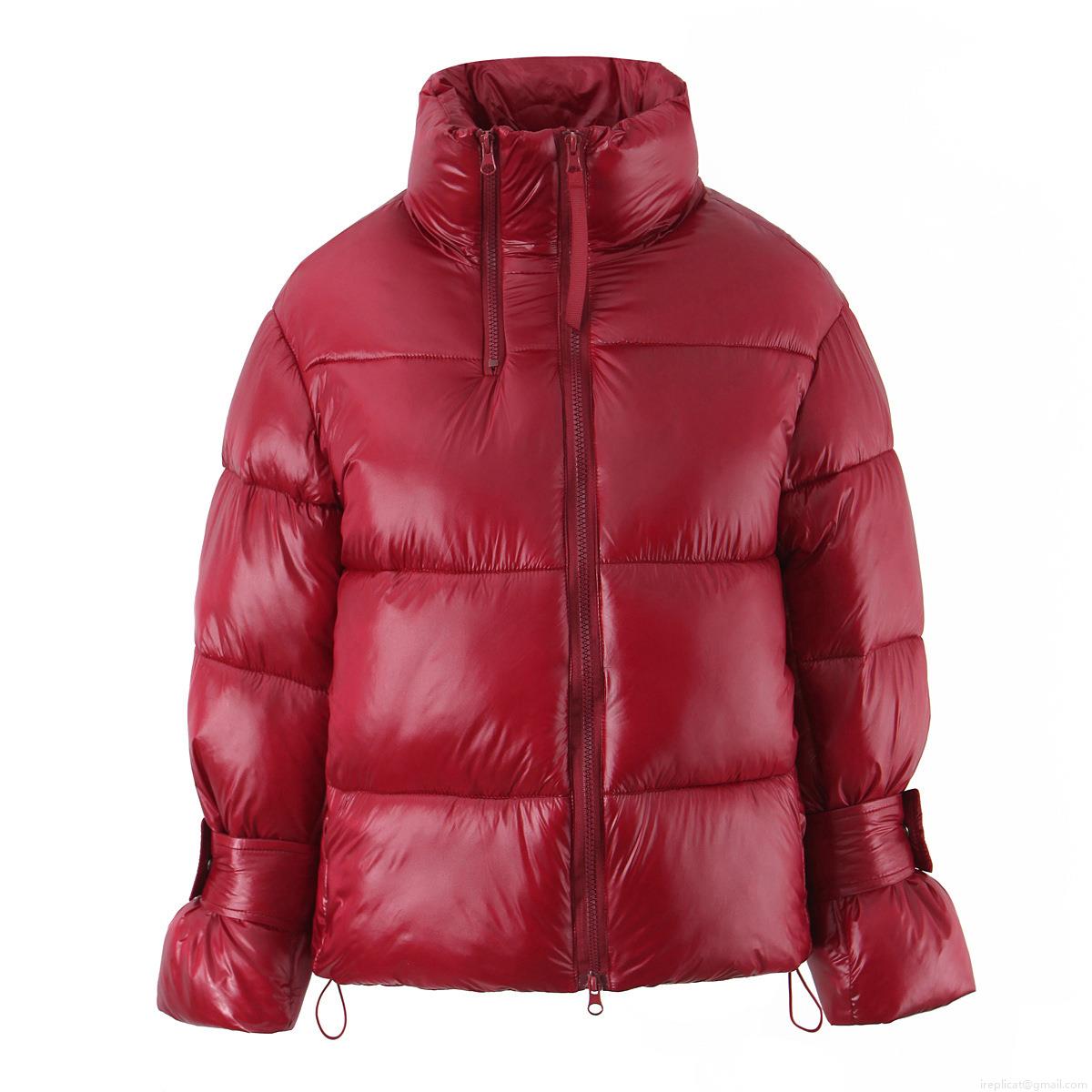 • Women's Metallic Glossy Puffer Jacket Stand Collar Double Zipper Bread Coat Thick Warm Winter Outerwear Casual Fashion Short Parka with Drawstring Cuffs for Women