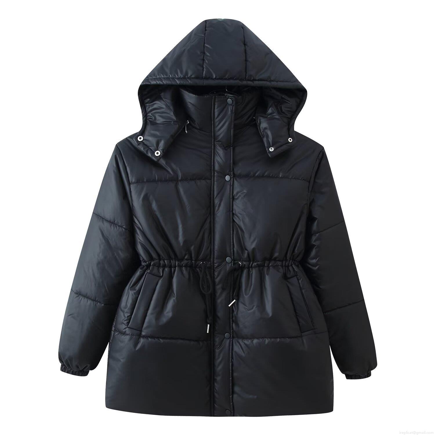 • Women's Mid-Length Hooded Puffer Jacket Quilted Cotton-Padded Winter Coat With Drawstring Waist Casual Windproof Outerwear Warm Parka For Ladies