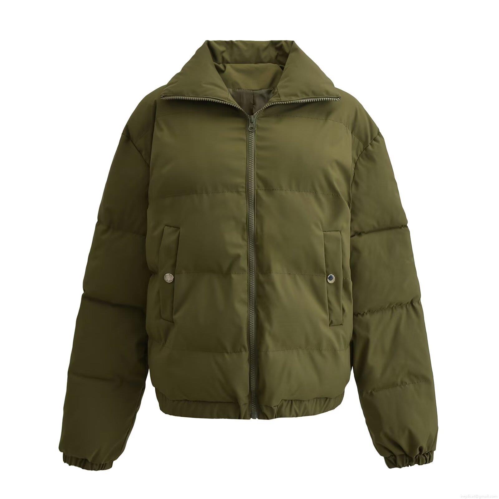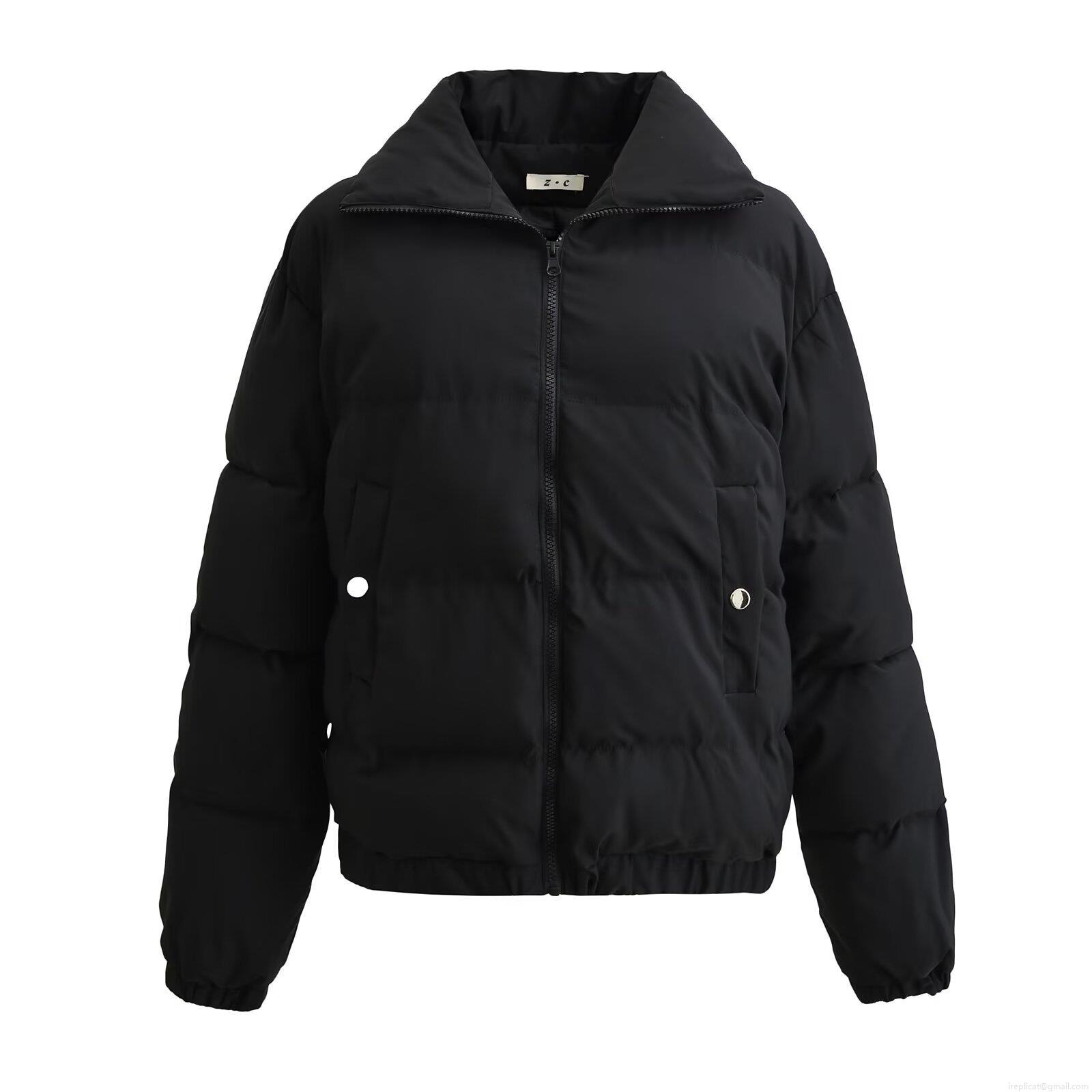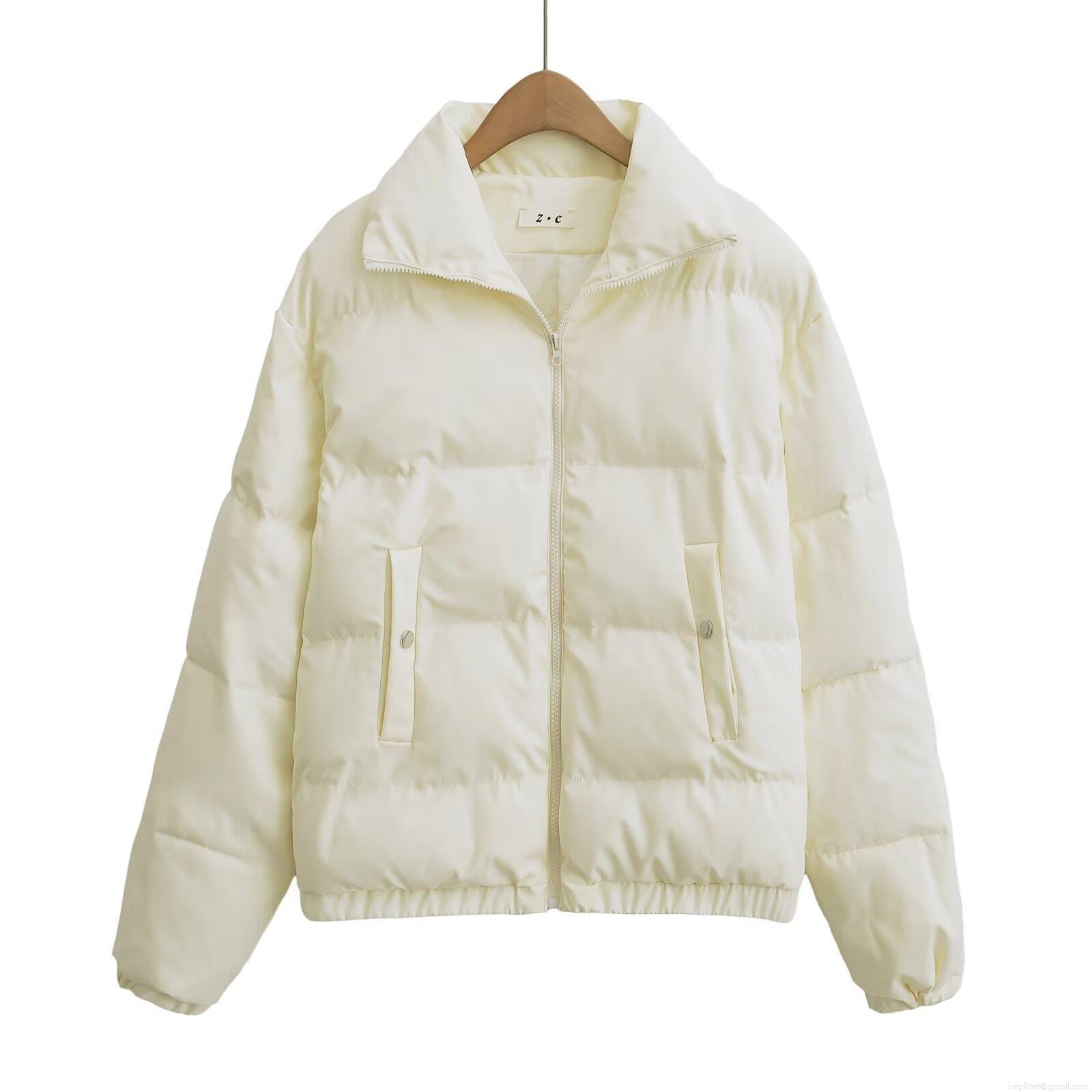 Solid Color, Zipper Decoration, Stand-up Collar Design, Horizontal Quilting