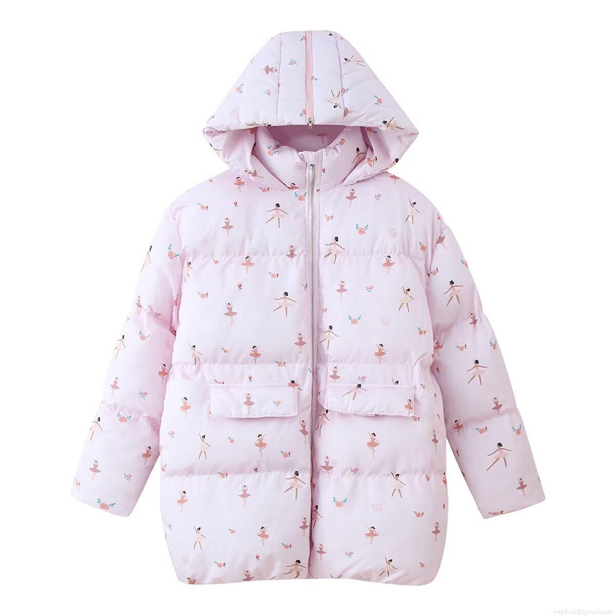 • Women's Oversized Floral Printed Hooded Padded Jacket Long Sleeve Strawberry Ballet Print Casual Windproof Polyester Cotton Coat with Pockets
