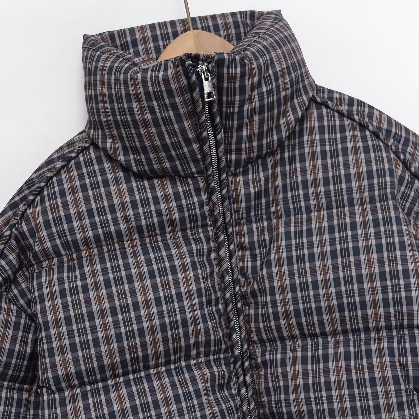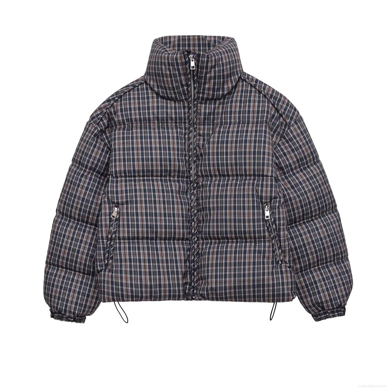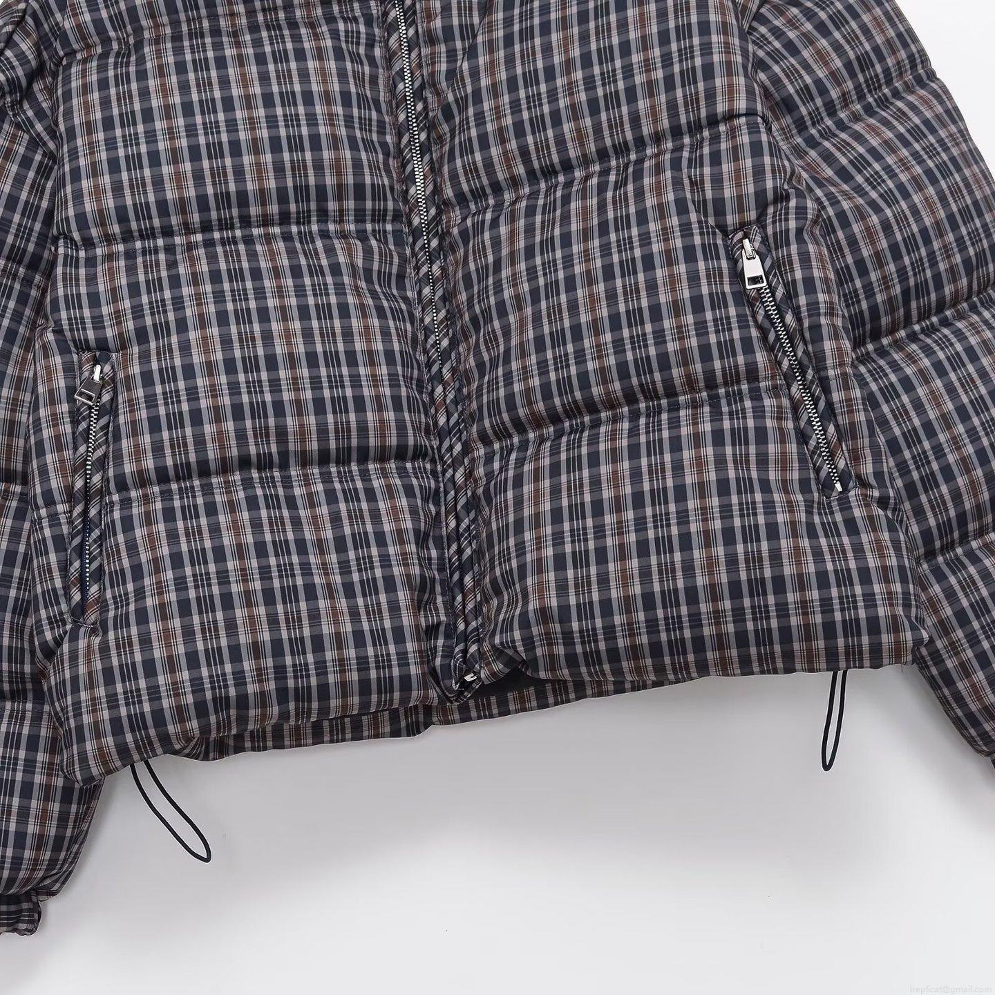 • Women's Plaid Puffer Jacket Stand Collar Drawstring Hem Zip-Up Checkered Cotton-Padded Coat Warm Windproof Winter Outwear Casual Fashion Lady