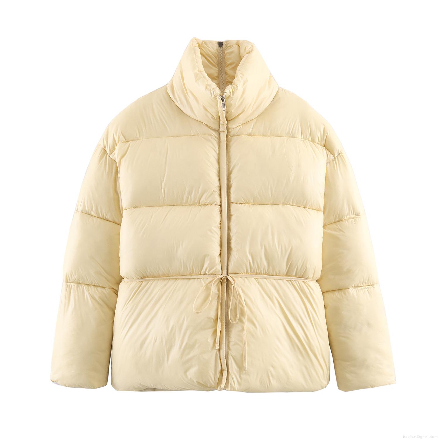 Women's Puffer Jacket White Duck Down Filled Warm Stand Collar Drawstring Waist Padded Coat Winter Casual Streetwear Ladies Windproof Outerwear