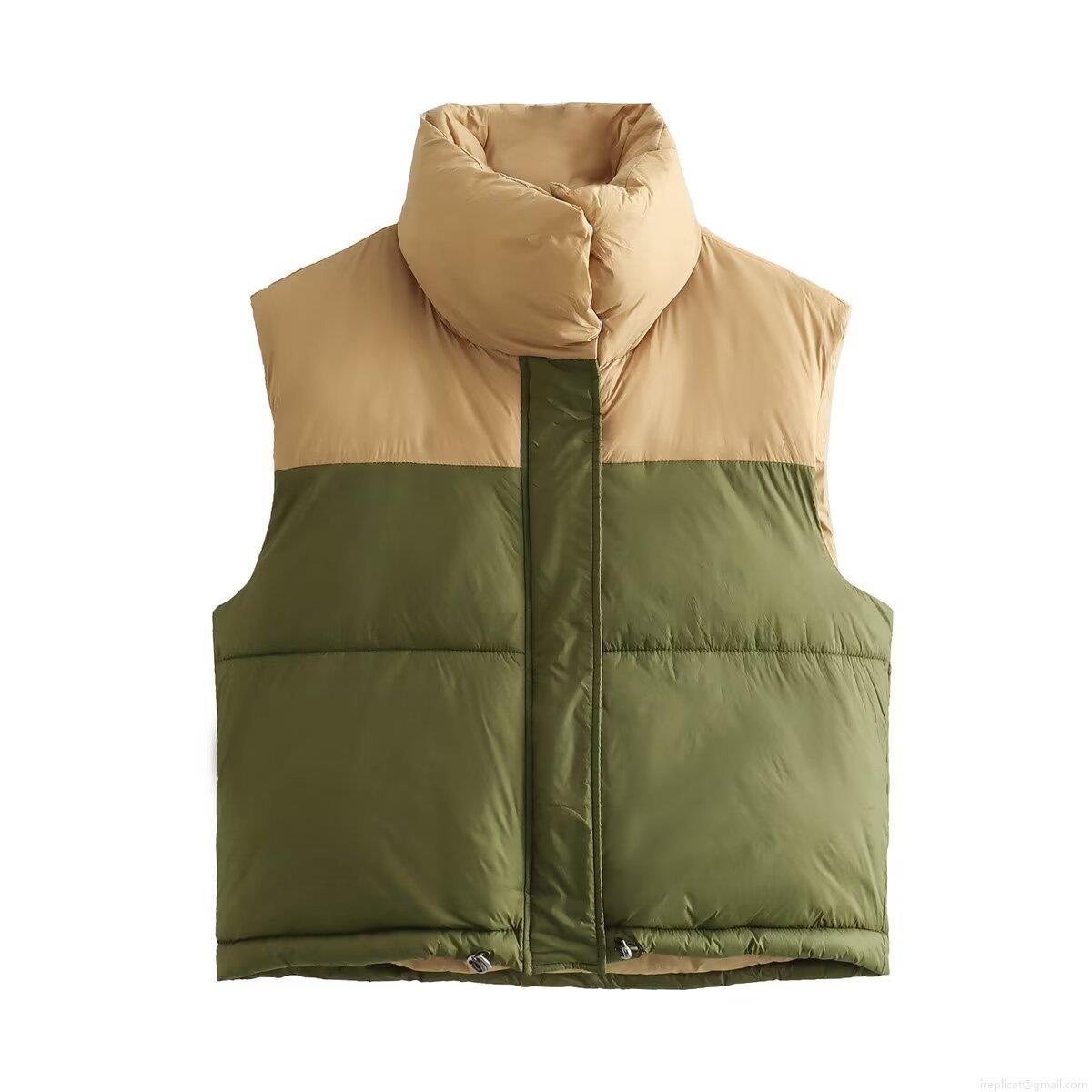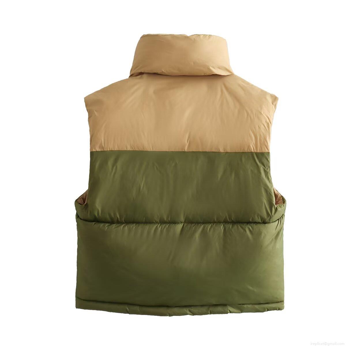 • Women's Puffer Vest 100% Polyester Color-block Stand-up Collar Sleeveless Cotton Padded Jacket With Zipper Drawstring Hem For Casual Outdoor Winter Wear