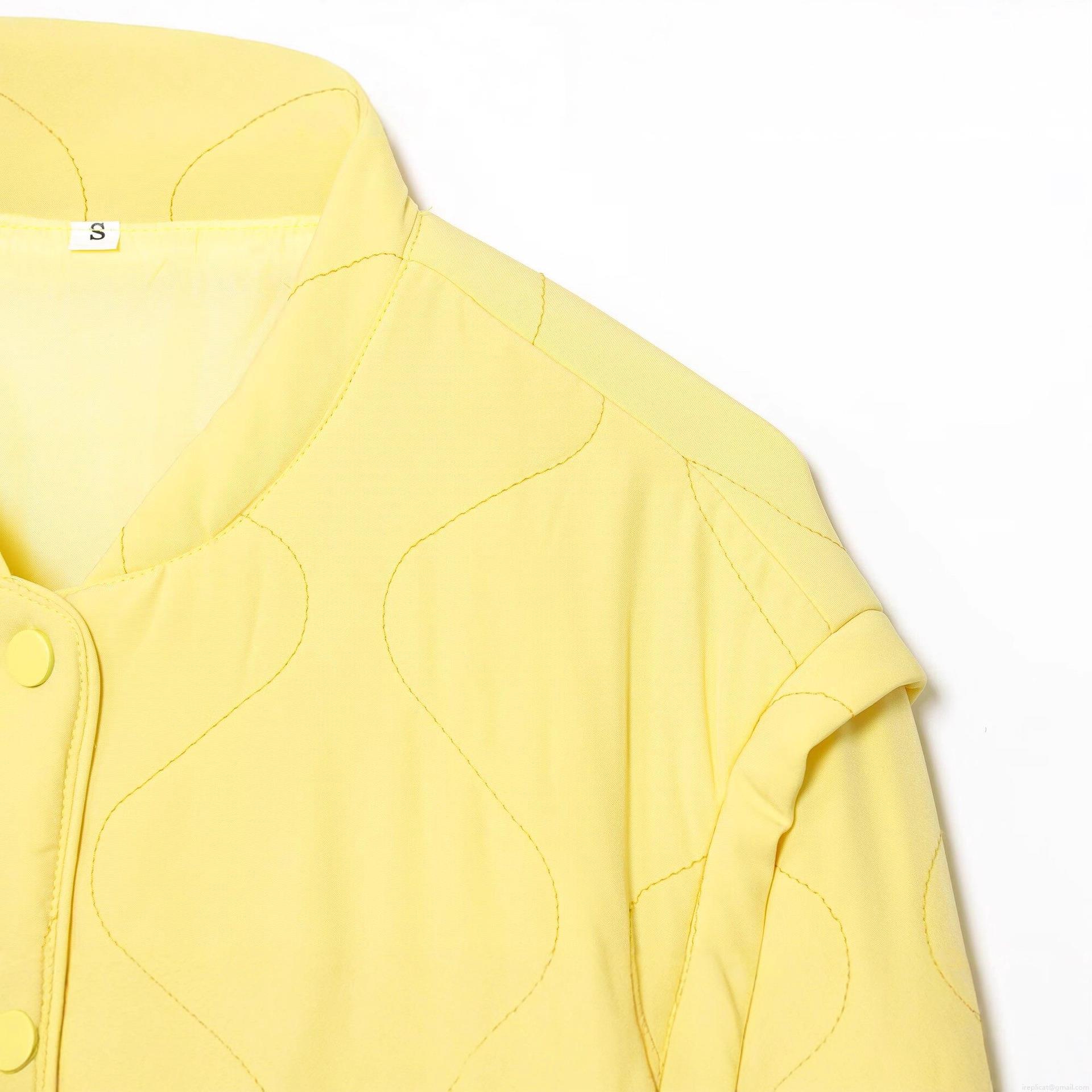• Women's Quilted Cotton Jacket 100% Polyester Wave Pattern Padded Outerwear Round Neck Long Sleeve Loose Fit Warm Winter Streetwear Coat