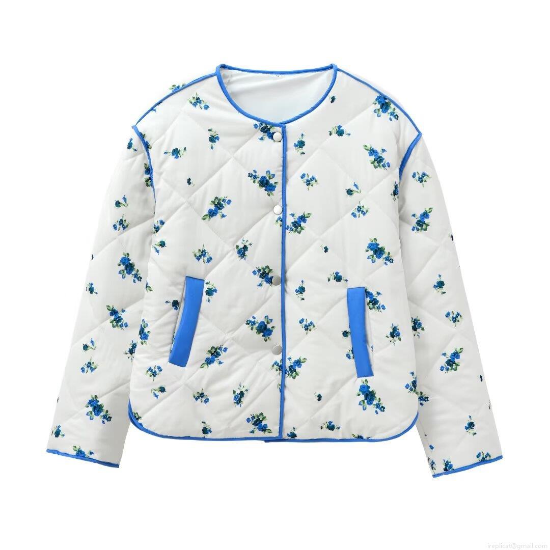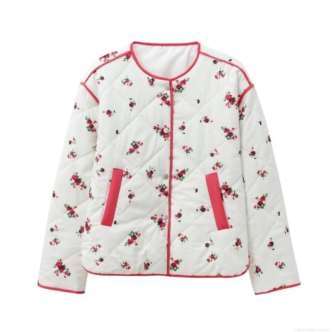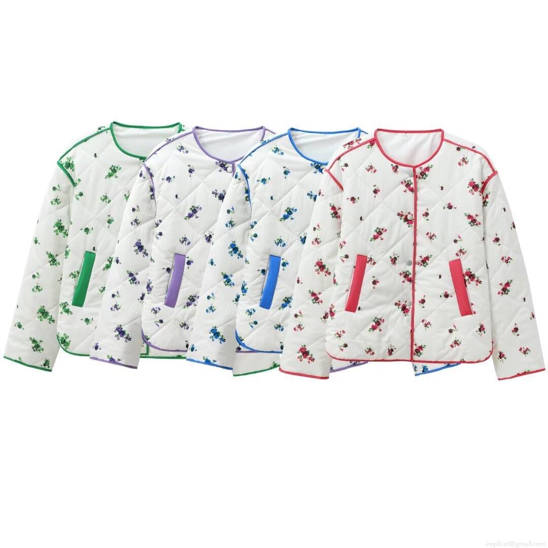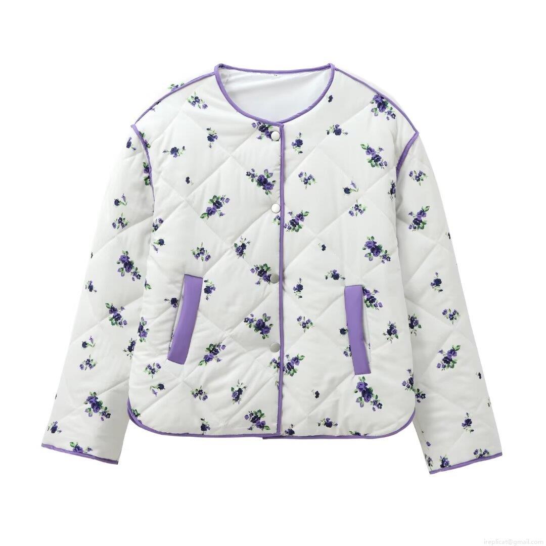 • Women's Quilted Floral Print Cotton Padded Jacket Polyester Fabric Warm Lightweight Casual Coat For Winter Outdoor Streetwear Ladies Fashion Long Sleeve Outerwear