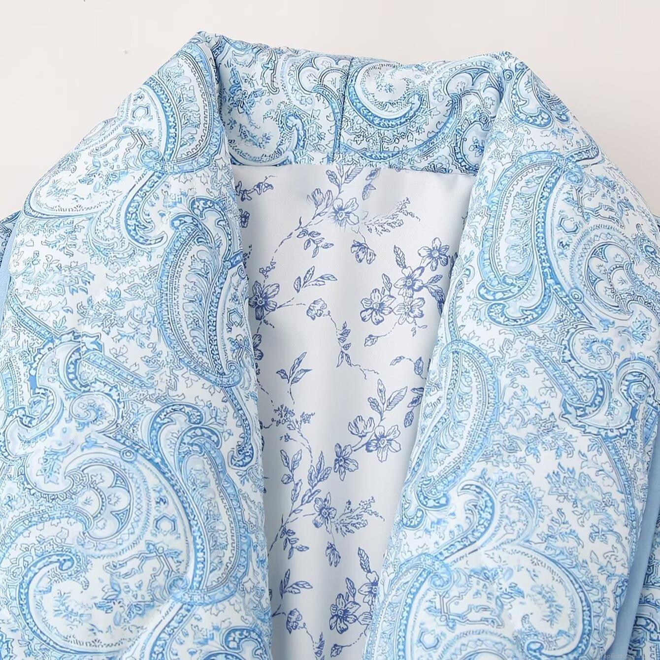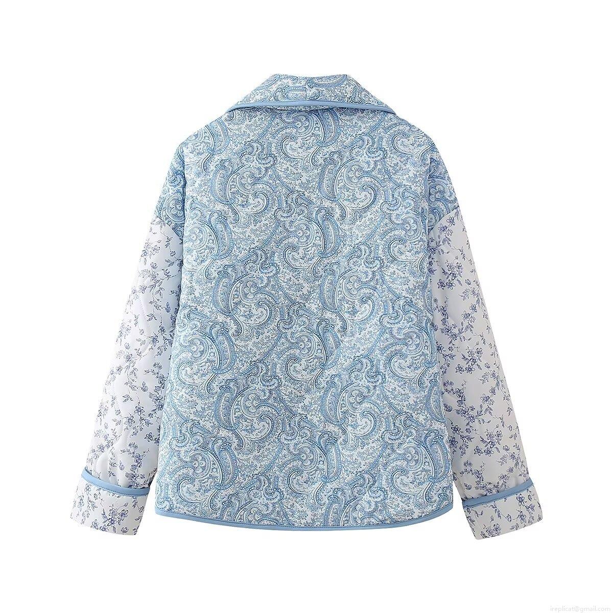 • Women's Quilted Jacket Polyester Paisley Floral Print Padded Coat Lapel Long Sleeve Loose Outerwear For Autumn Winter Casual Sweet Style
