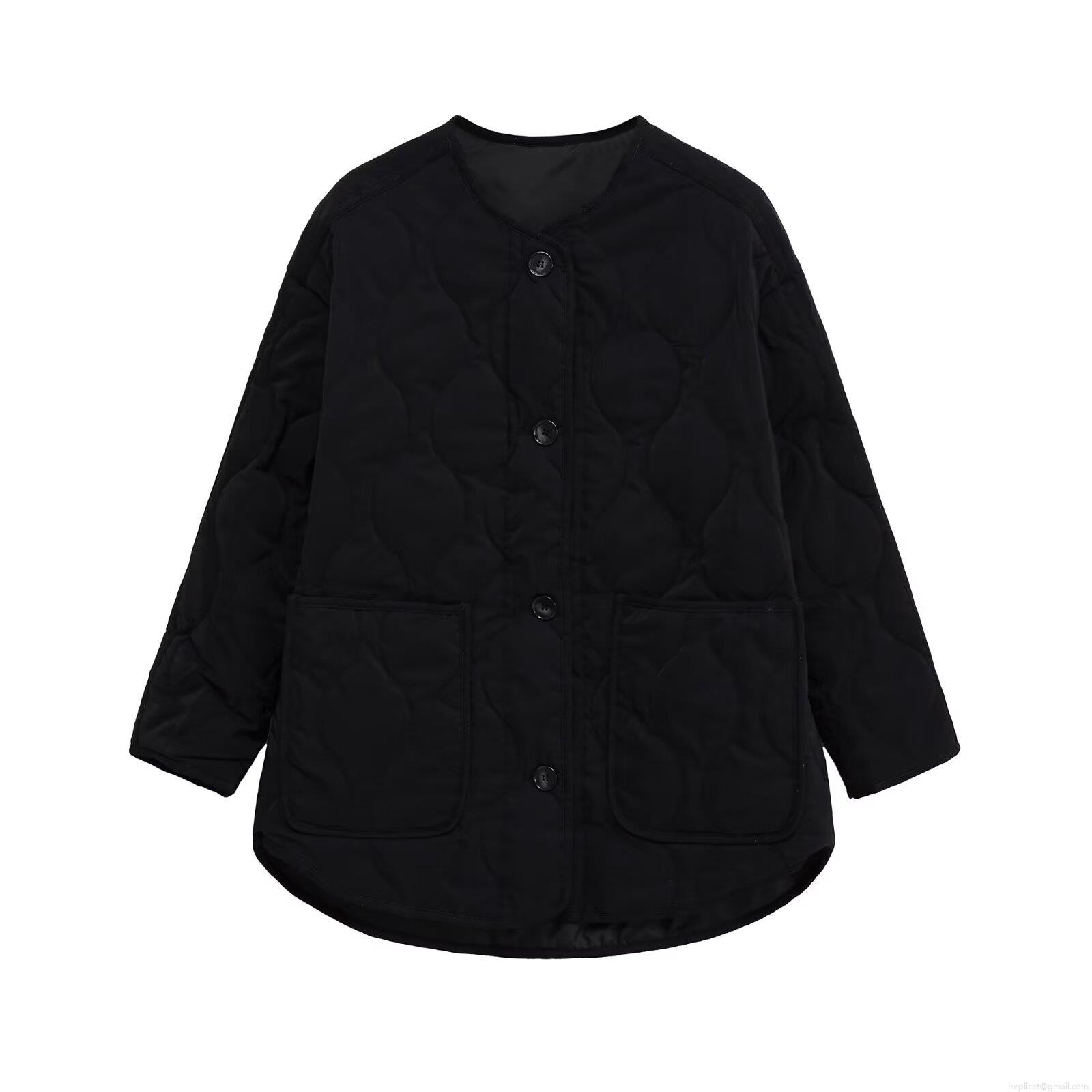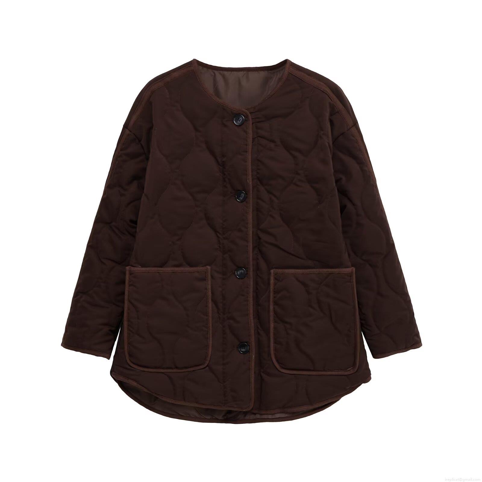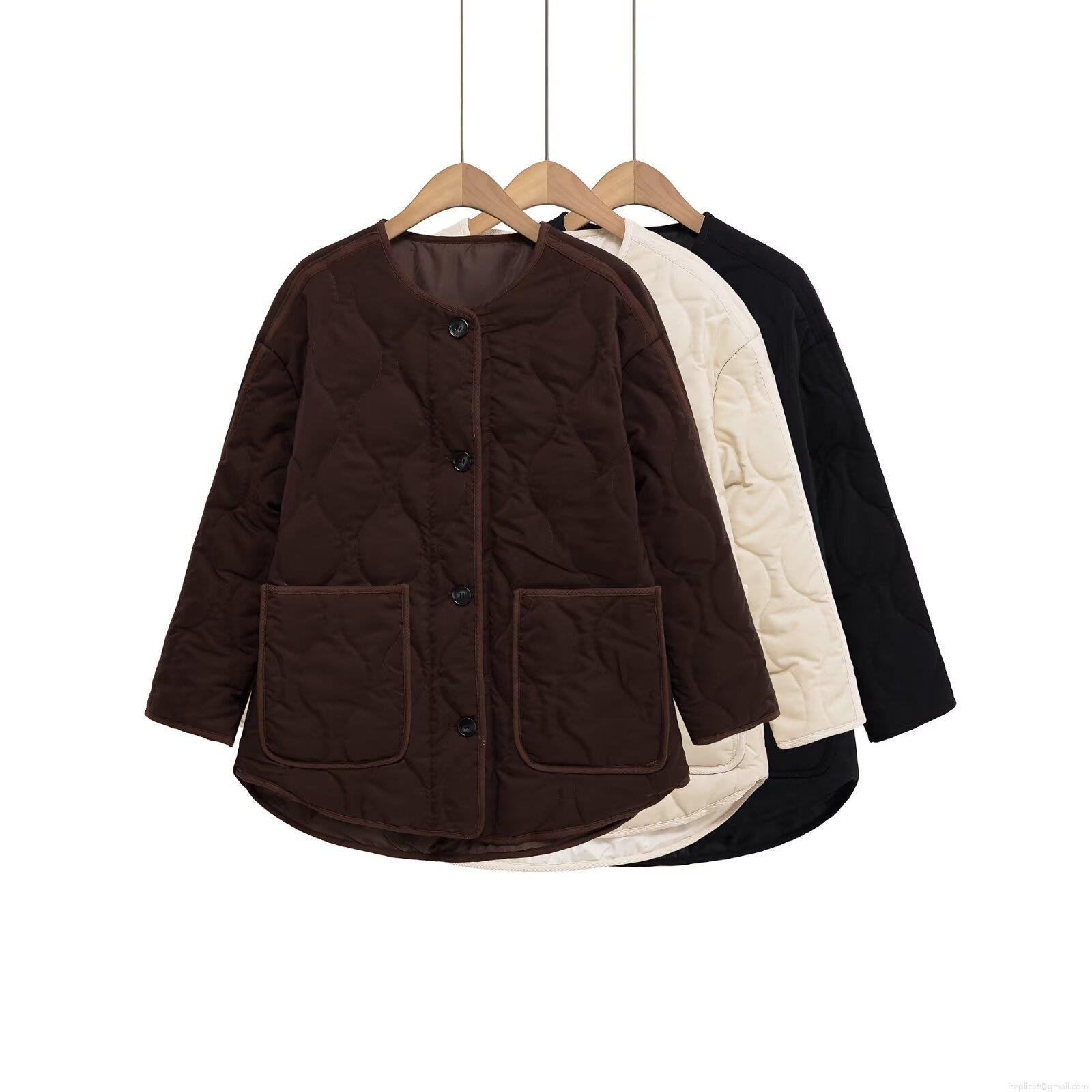 Solid Color, Pocket, Single-breasted, Quilting, Diamond Quilting