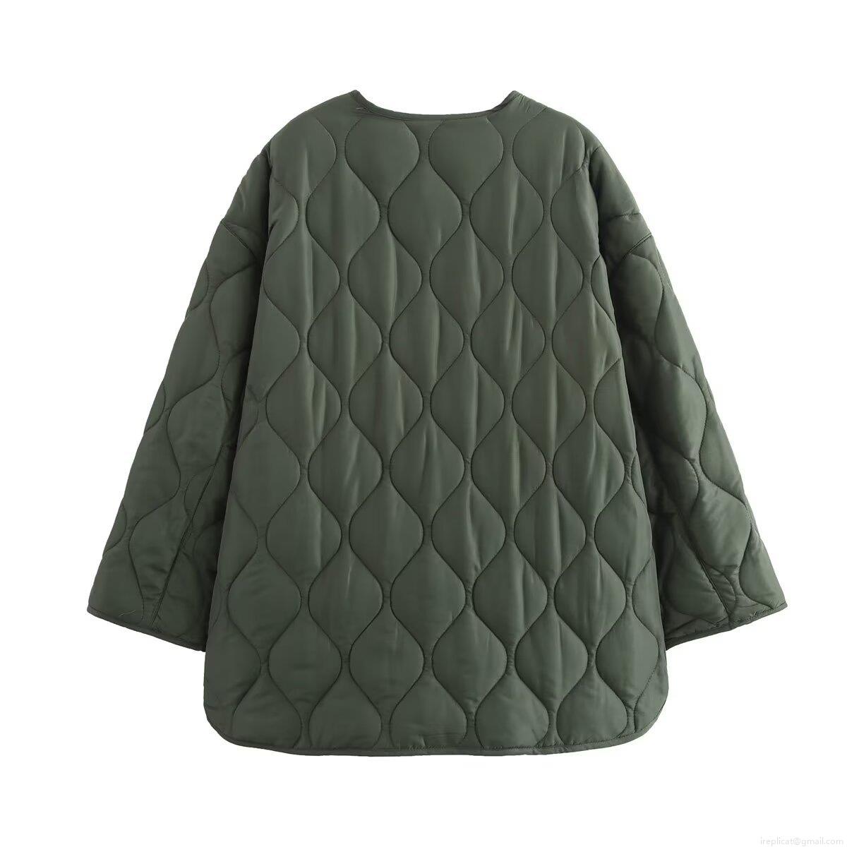 • Women's Quilted Padded Jacket Oversized V-Neck Zipper Outerwear Coat Autumn Winter Casual Streetwear Warm Pockets Olive Green Cotton Blend Long Sleeve Parka