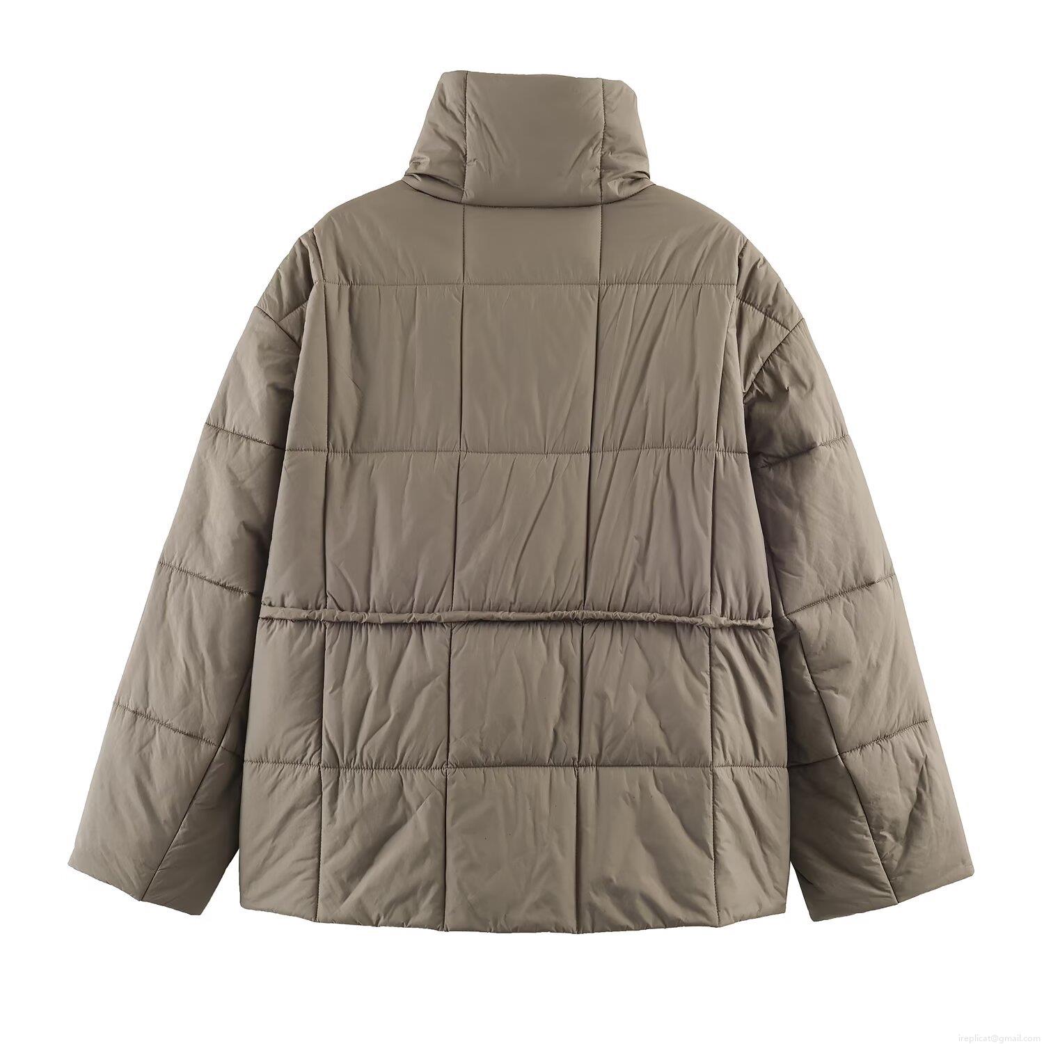 • Women's Quilted Padded Jacket Polyester Long Sleeve Stand Collar Single Breasted Coat With Belt Winter Warm Streetwear Loose Outerwear