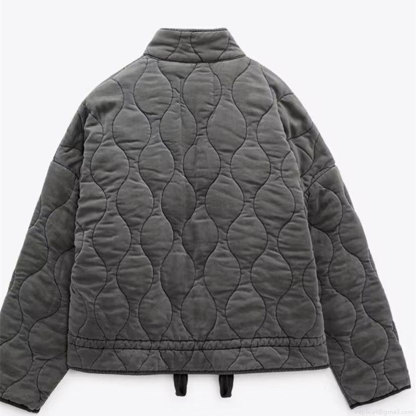 • Women's Quilted Padded Jacket Stand Collar Washed Polyester Zipper Outerwear Large Pockets Warm Winter Coat Casual Streetwear Style Solid Color Jacket