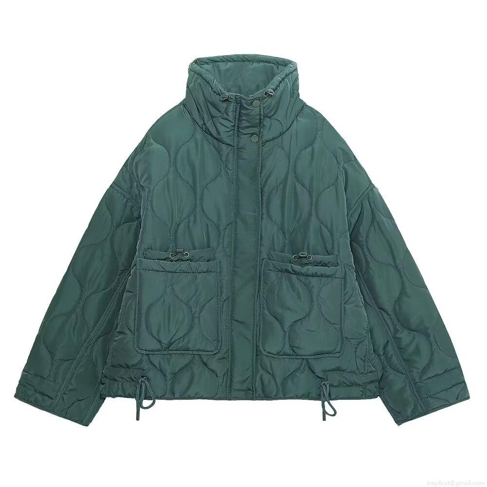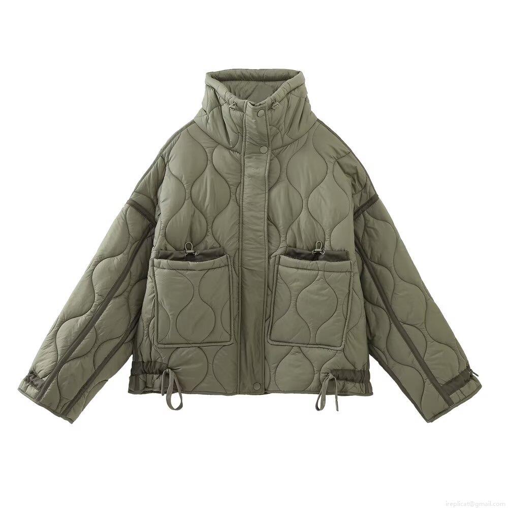 Solid Color, Large Patch, Gourd Pattern Quilting, Drawstring At The Hem, Wavy Quilting, High Collar