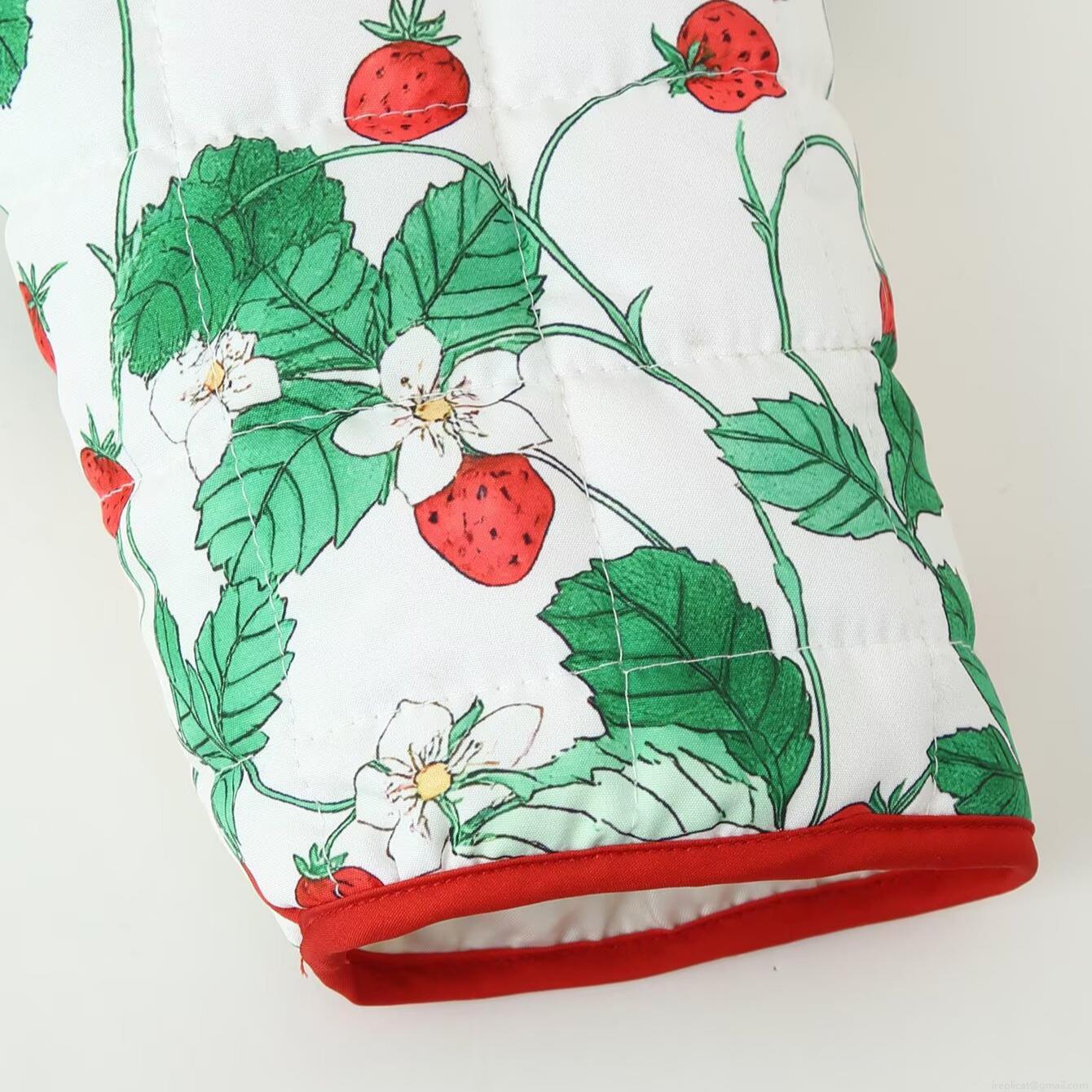 Strawberry, Quilting, Strawberry Print, Single-breasted, Rolled Edge Design, Front Pocket, Red And Green Strawberry Print