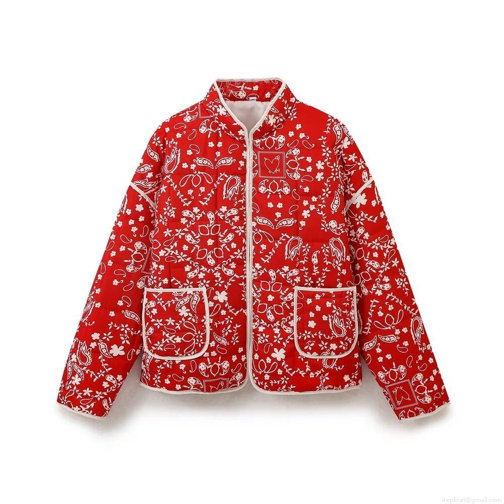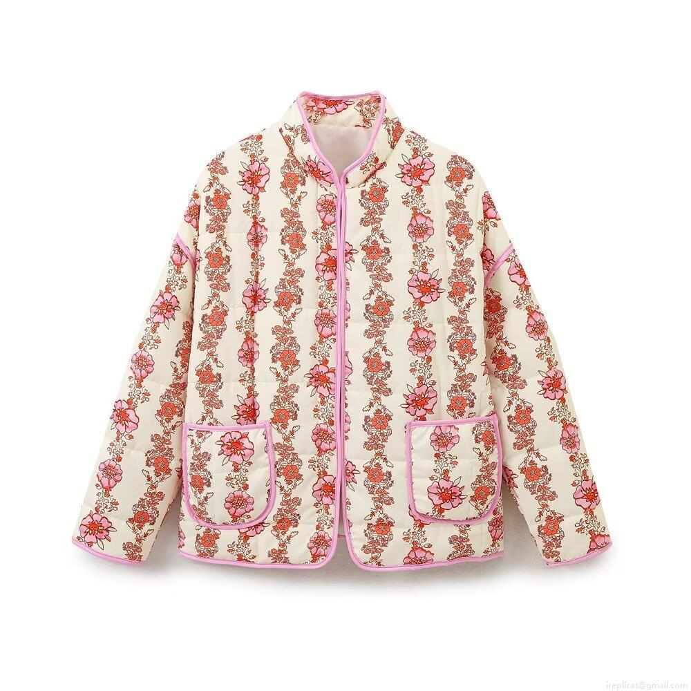 • Women's Retro Floral Print Quilted Jacket Lightweight Stand Collar Puffer Coat Ethnic Style Casual Padded Outerwear With Pockets For Autumn Winter