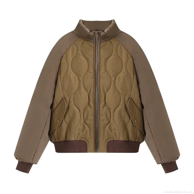 • Women's Retro Quilted Pilot Jacket Padded Cotton Filled Oversized Stand Collar Puffer Coat Wave Quilted Warm Windproof Winter Outwear For Women Streetwear