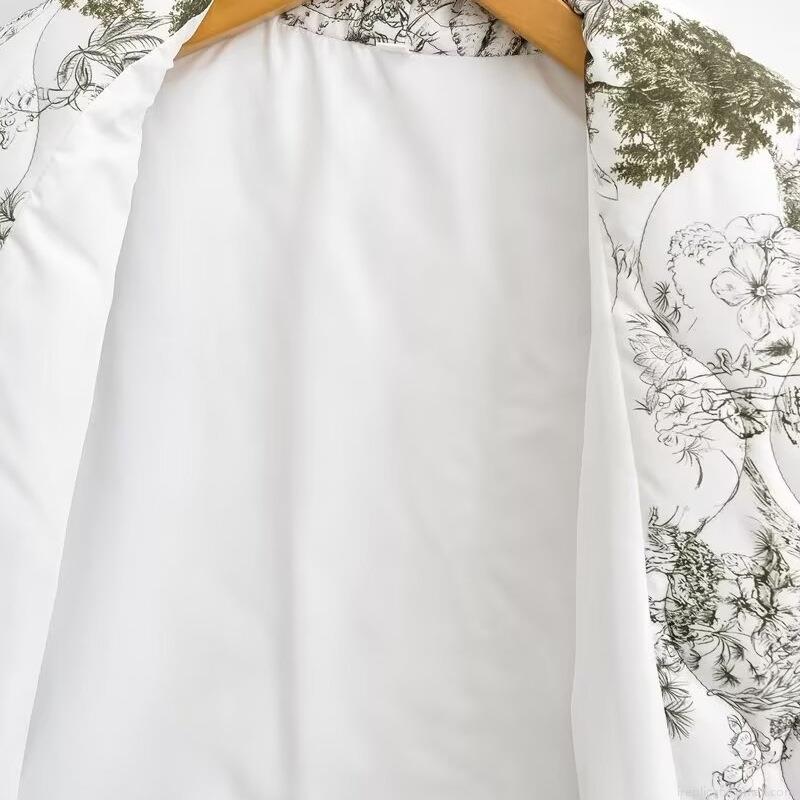 Women's Retro Toile de Jouy Print Quilted Jacket French Vintage Padded Coat Lapel Loose Long Sleeve Outerwear For Autumn Winter