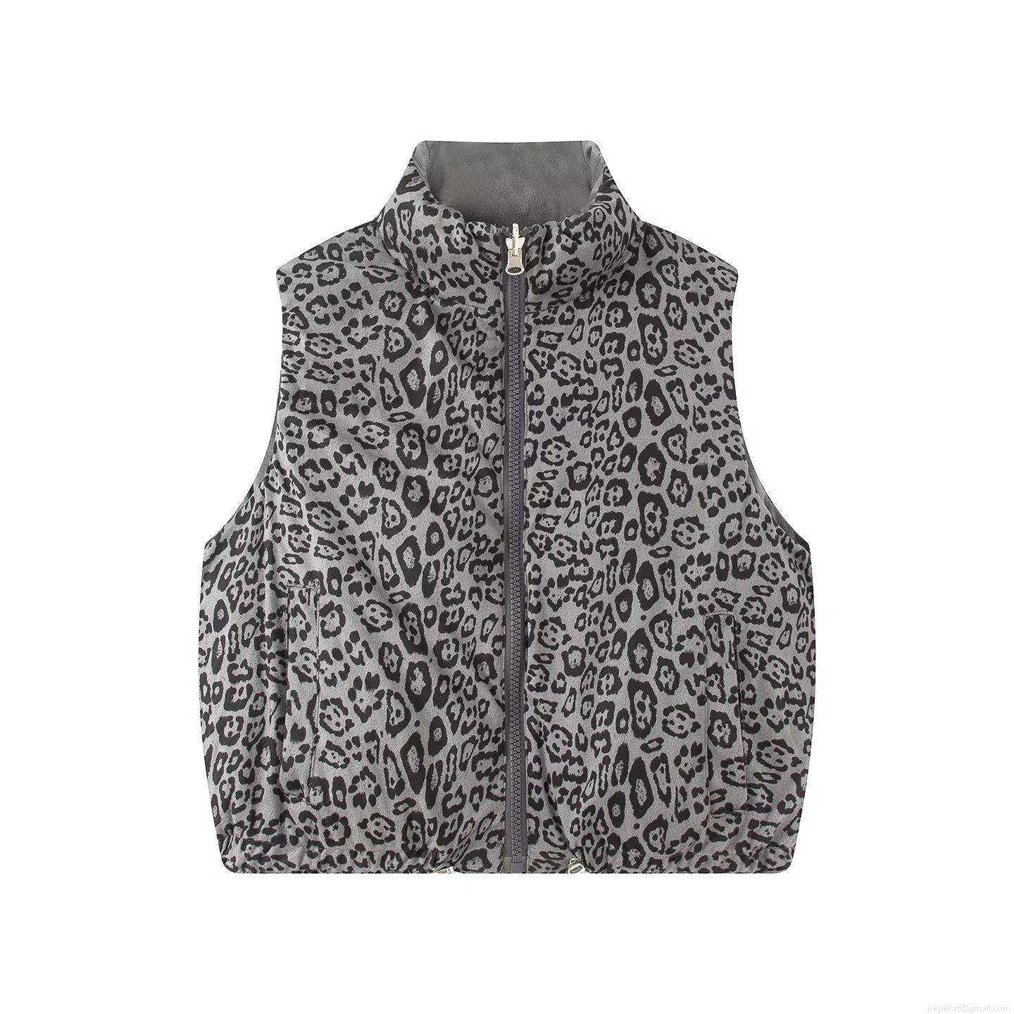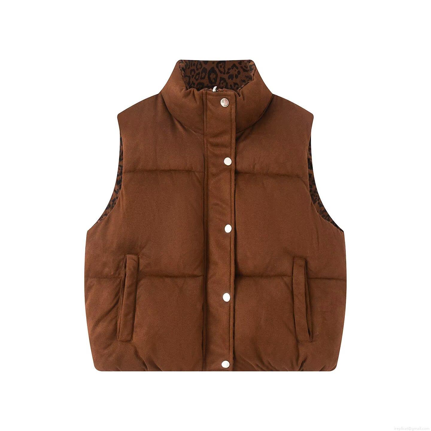• Women's Reversible Leopard Print Padded Vest Stand Collar Suede Quilted Down Cotton Sleeveless Jacket For Winter Autumn Outdoor Casual Streetwear