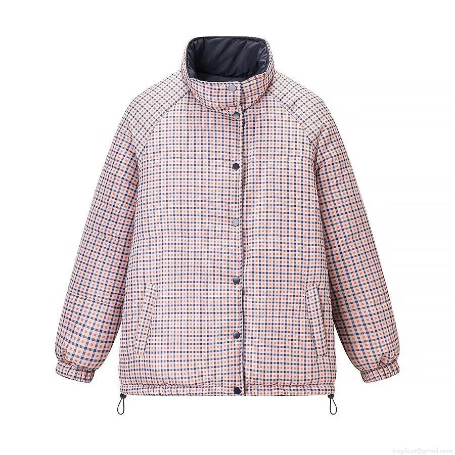 • Women's Reversible Padded Jacket Stand Collar Plaid Solid Color Winter Warm Cotton Padded Coat With Snap Buttons Drawstring Hem Fashion Casual Outerwear For Women