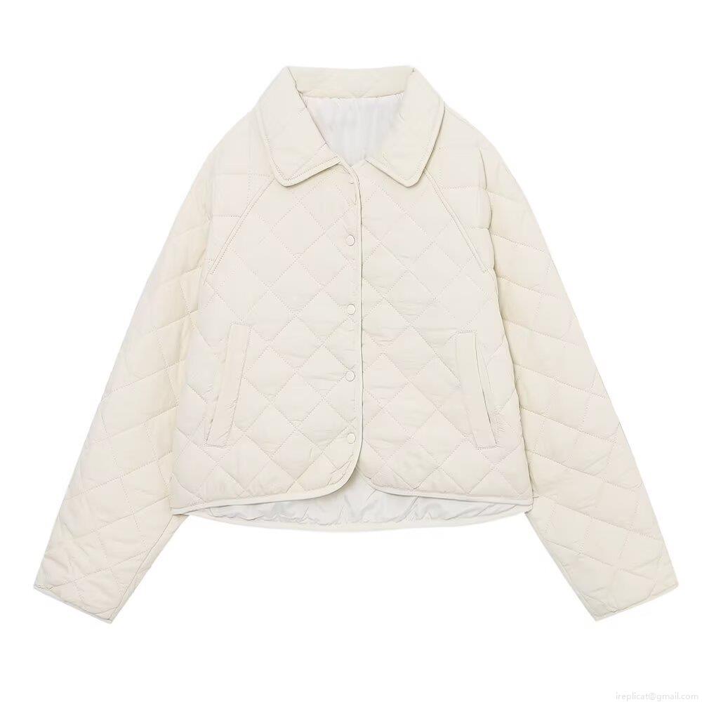 • Women's Rhombic Quilted Jacket Polyester Padded Short Outerwear Single Breasted Lapel Collar Warm Cotton Coat For Casual Streetwear Autumn Winter