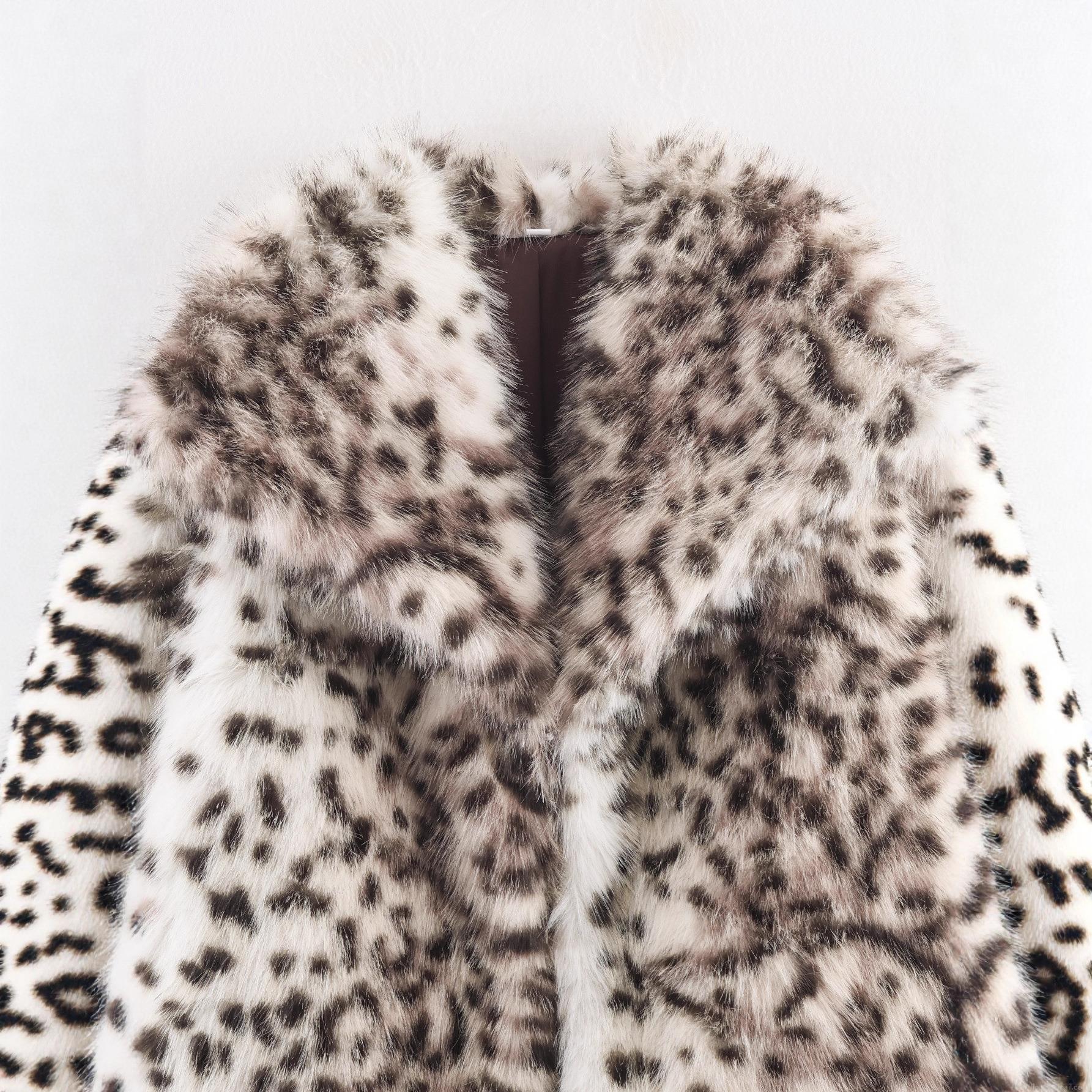 • Women-s Sexy Leopard Print Faux Fur Coat Thick Warm Winter Shaggy Jacket With Lapel Collar-Polyester Lining Fashionable Outwear For Party Daily Leisure Women Clothing