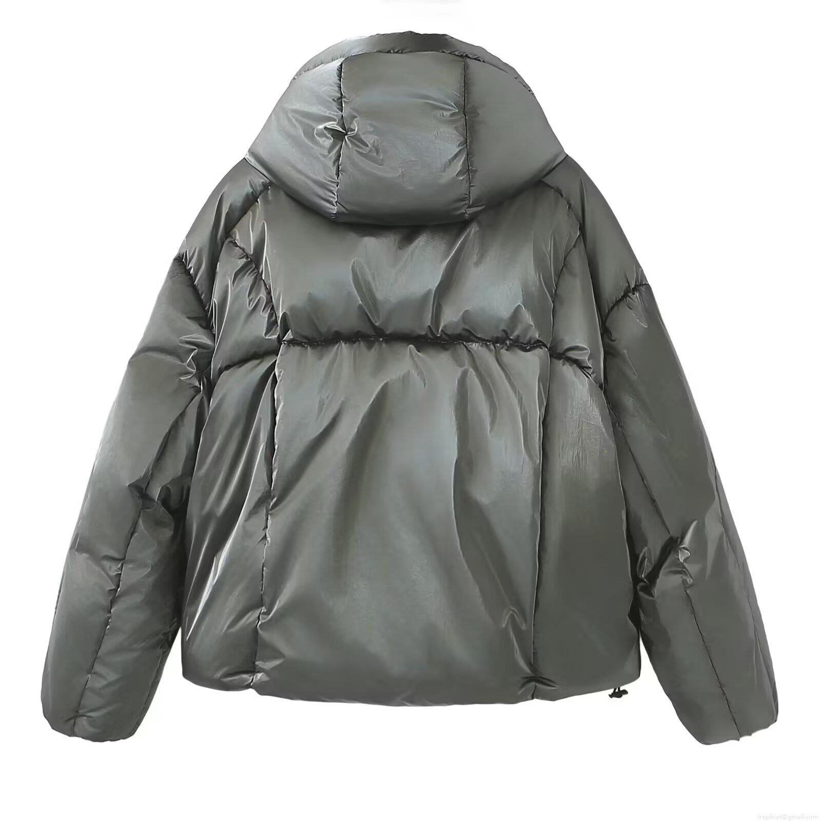 • Women's Shiny Metallic Puffer Jacket Hooded Loose Quilted Padded Parka Warm Winter Outerwear Casual Zip-Up Bread Coat With Drawstring
