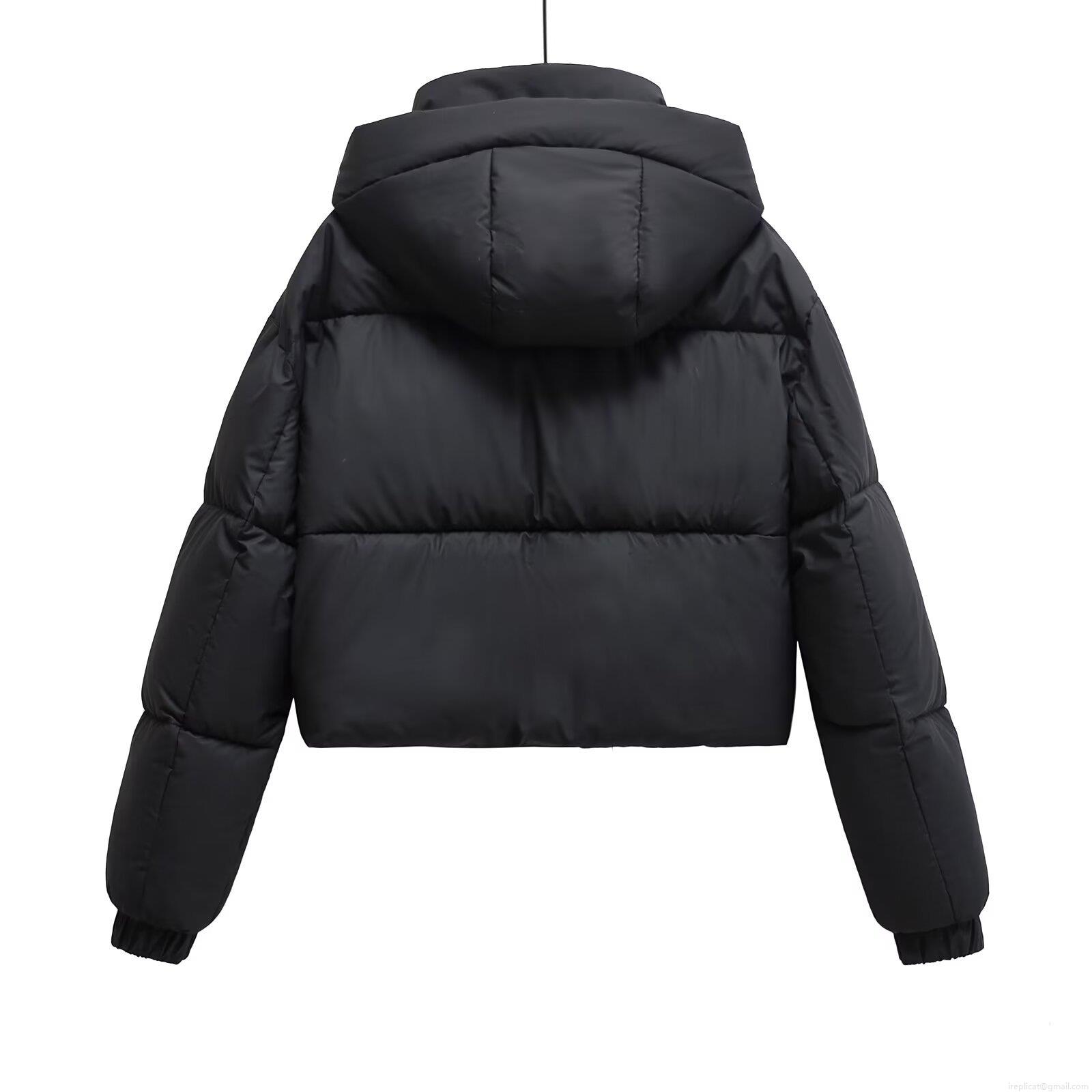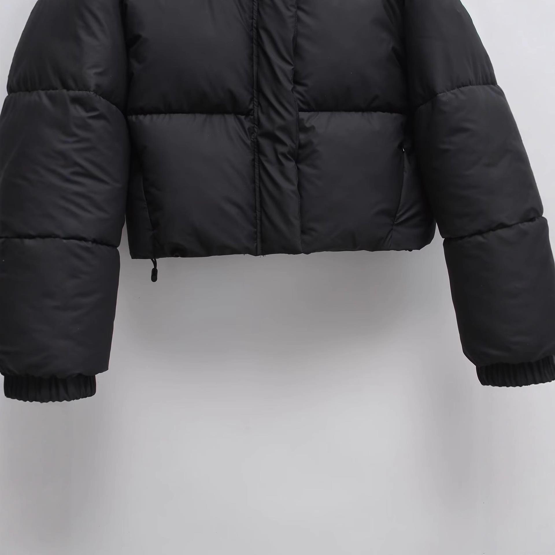 • Women's Short Hooded Puffer Jacket Polyester Warm Quilted Windproof Coat For Winter Casual Ladies Solid Black Outerwear