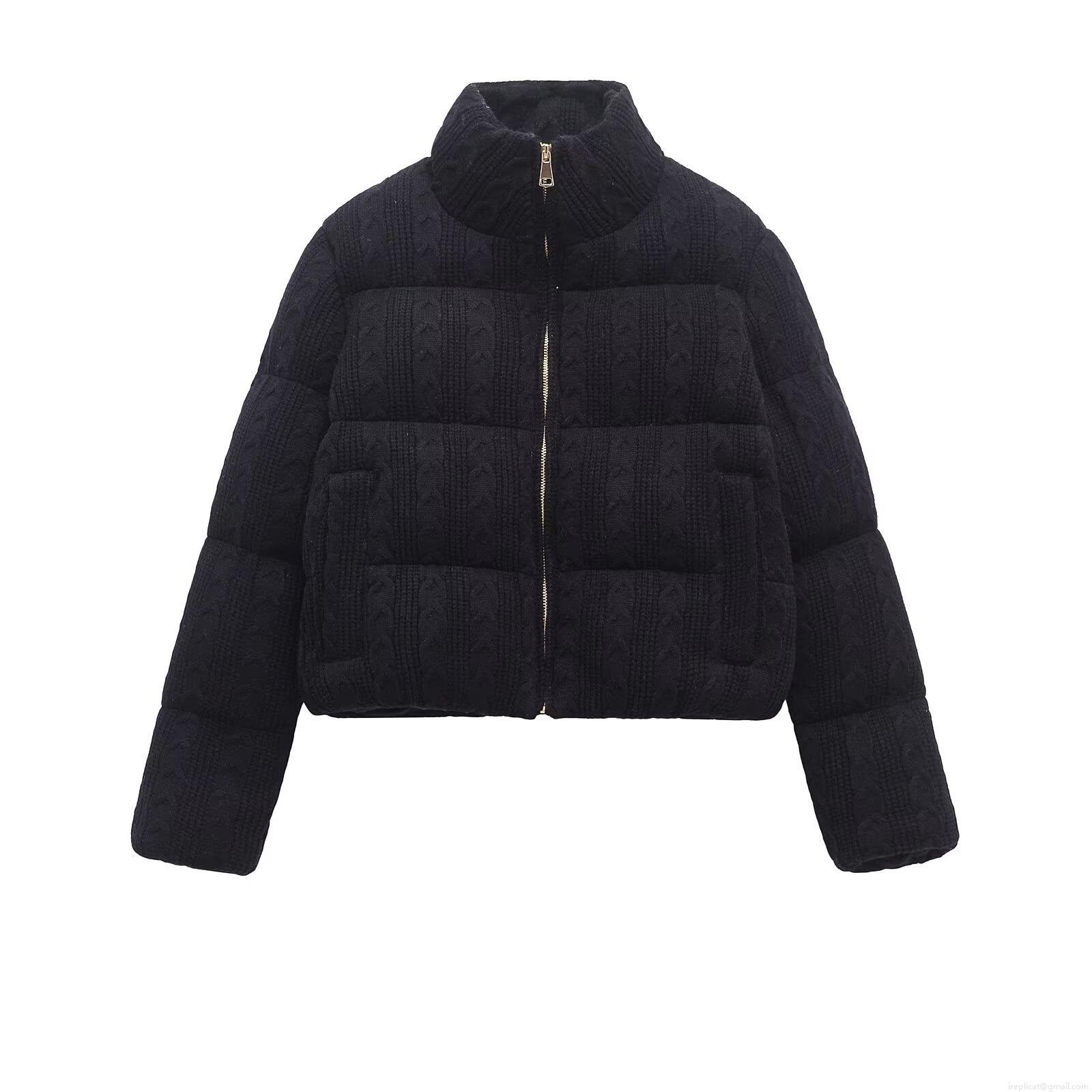 • Women's Short Puffer Jacket Knit Texture Stand Collar Zipper Casual Warm Cotton Padded Coat Solid Color Polyester Outwear For Winter Spring Streetwear