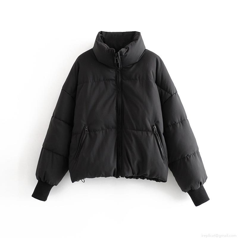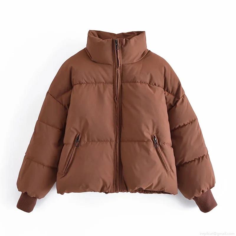 • Women's Short Puffer Jacket Stand Collar Zip Up Warm Cotton Padded Coat Windproof Streetwear Oversized Bread Jacket Outwear For Winter Casual Style