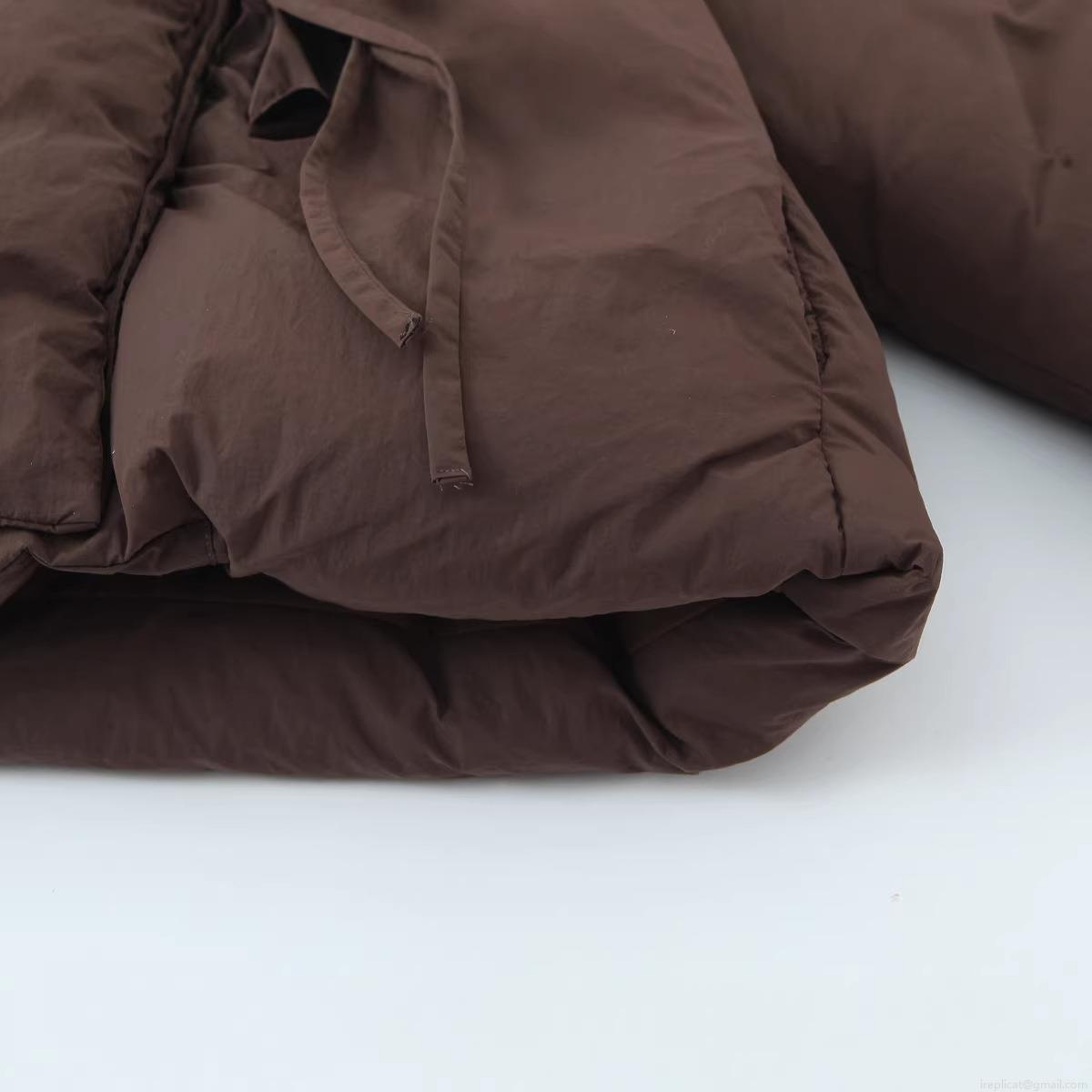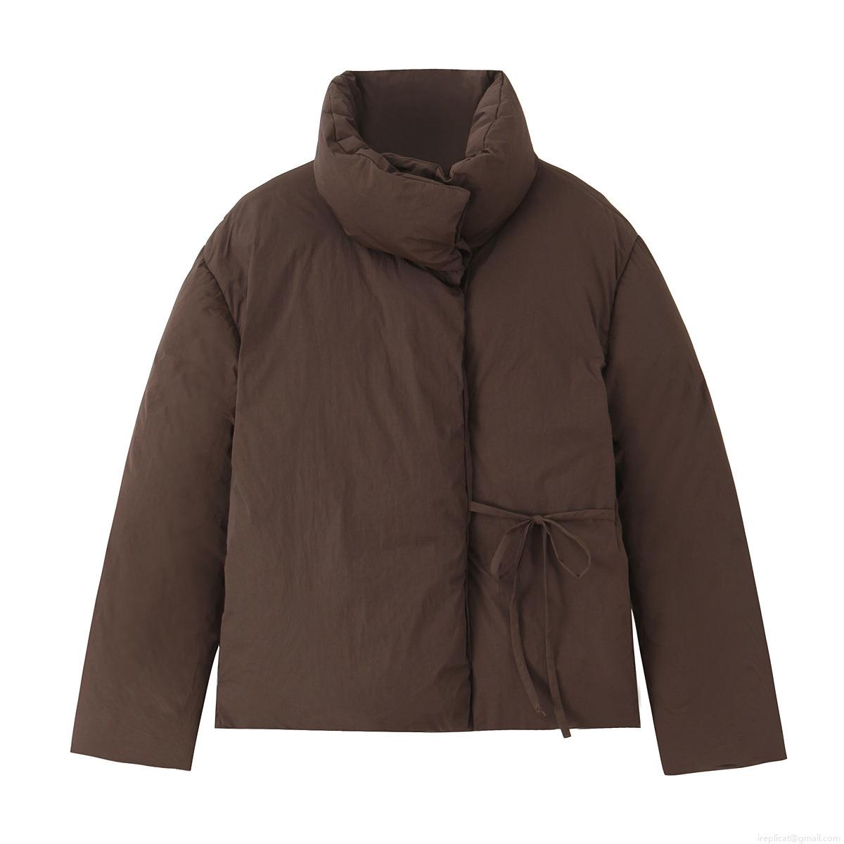 • Women's Short Puffer Jacket Thick Polyester Quilted Coat With Stand Collar Side Bow Ties Loose Casual Winter Outerwear For Women