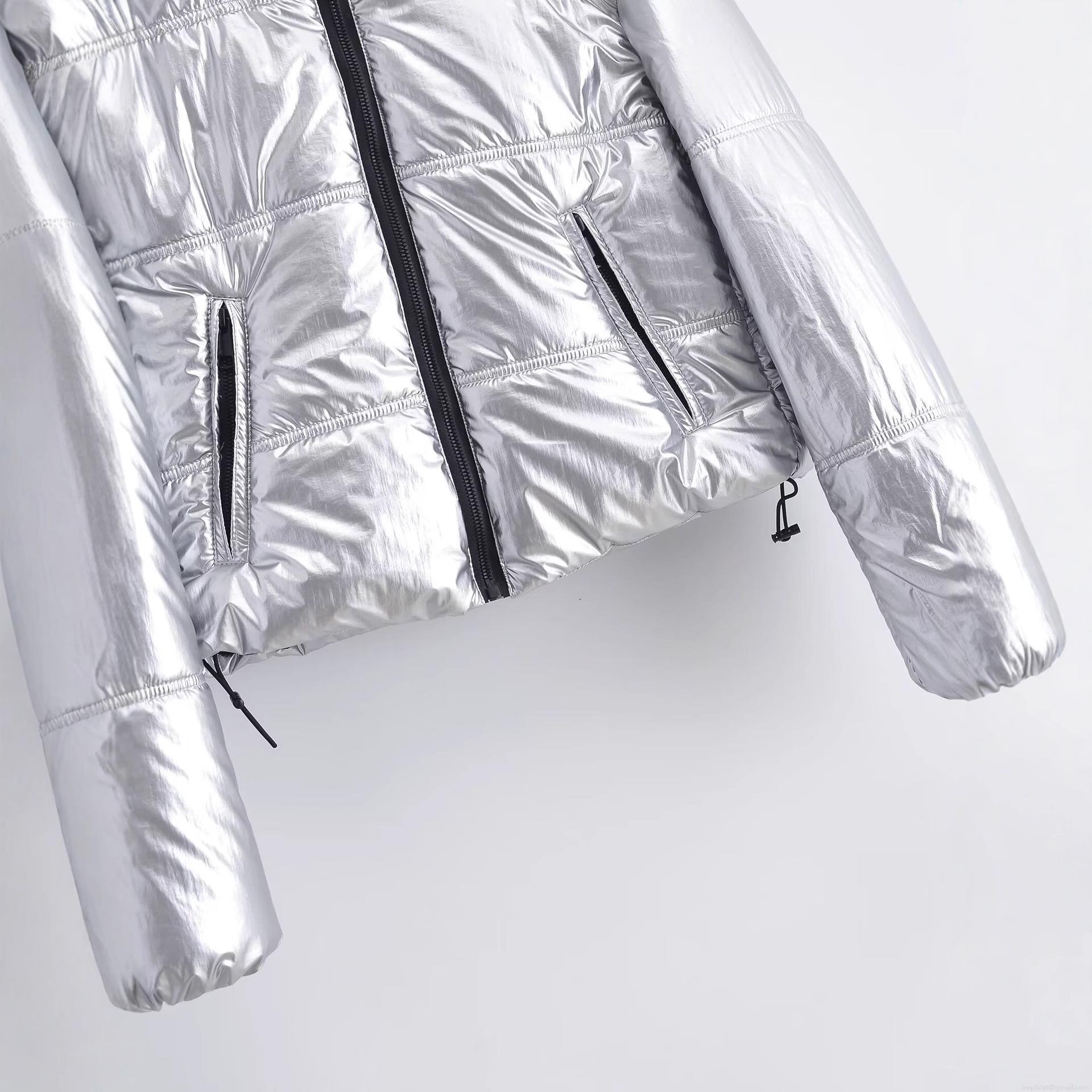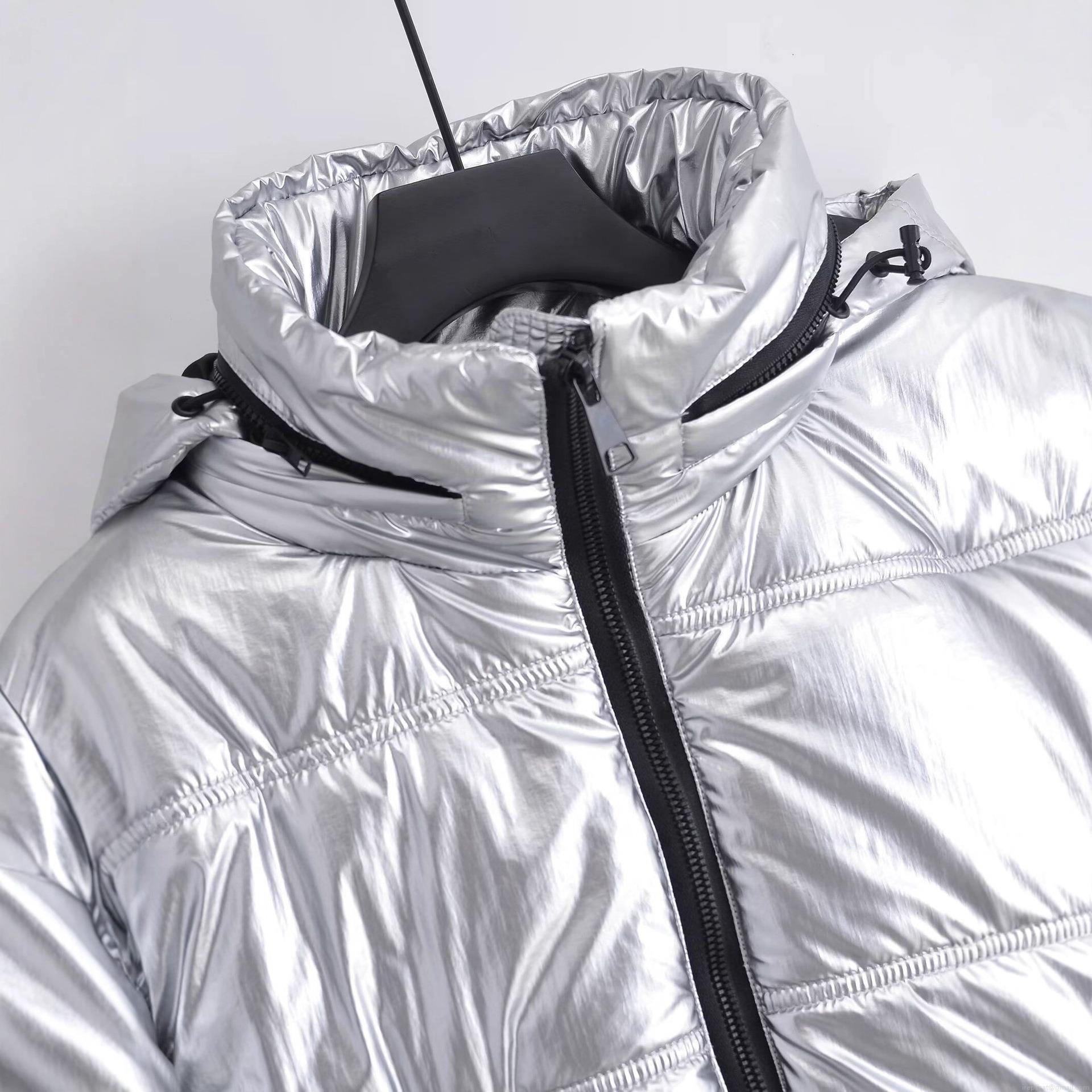• Women's Silver Metallic Hooded Puffer Jacket Shiny Padded Coat Short Winter Warm Outerwear Windproof Zip Up Quilted Jacket Women Streetwear Fashion