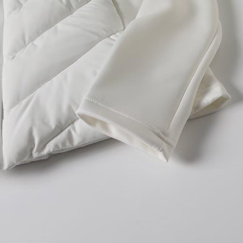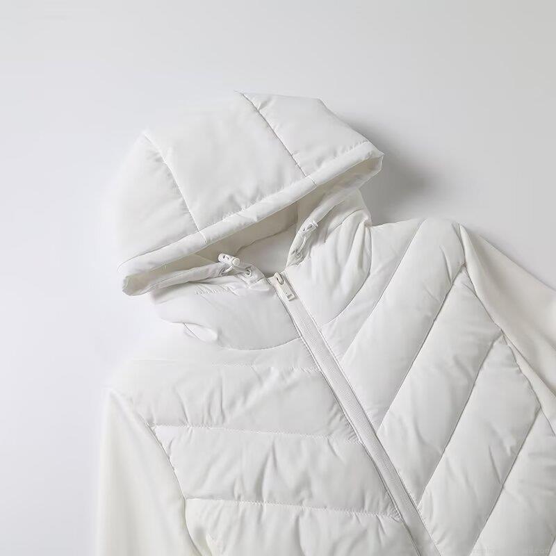 • Women's Slim Fit Hooded Puffer Jacket 100% Polyester Quilted Padded Coat with V-Shape Stitching Warm Long Sleeve Winter Outerwear for Daily Casual Wear