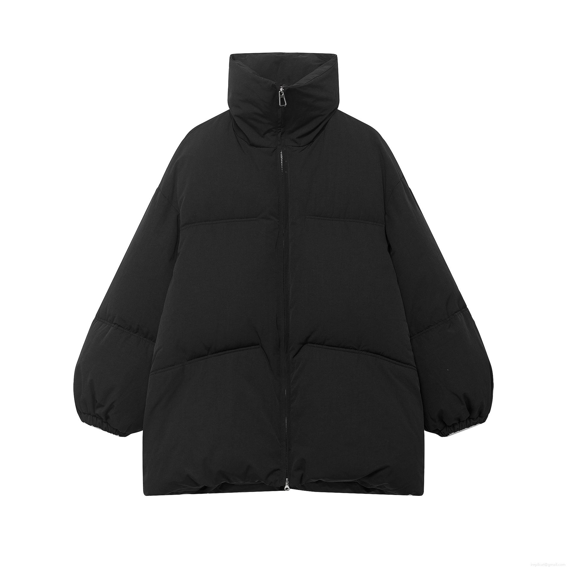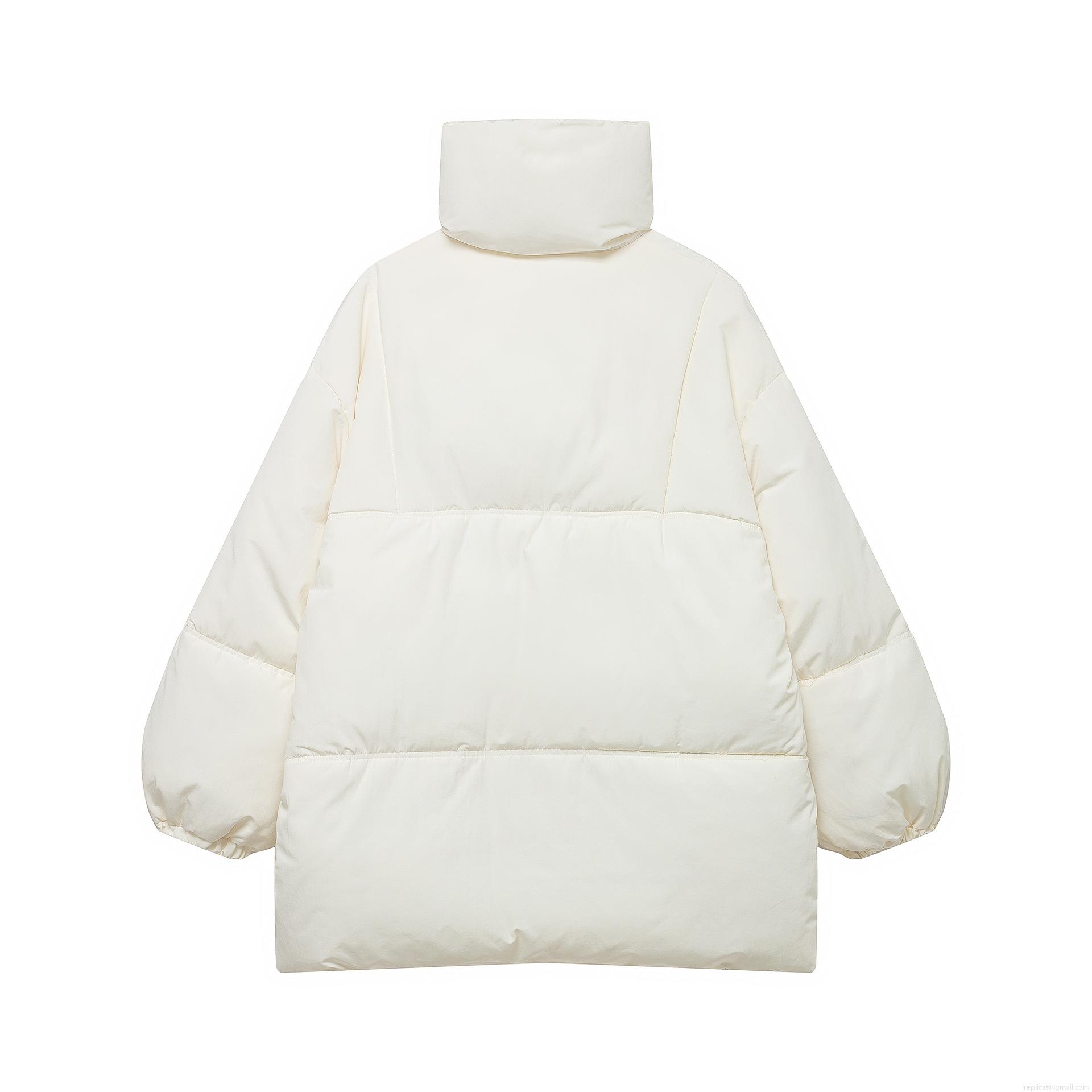 • Women's Stand Collar Padded Jacket Oversized Solid Color Long Sleeve Puffer Coat Casual Loose Mid-Length Winter Outerwear
