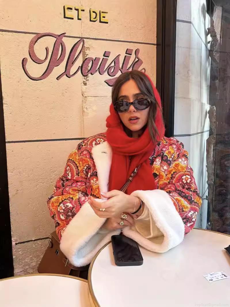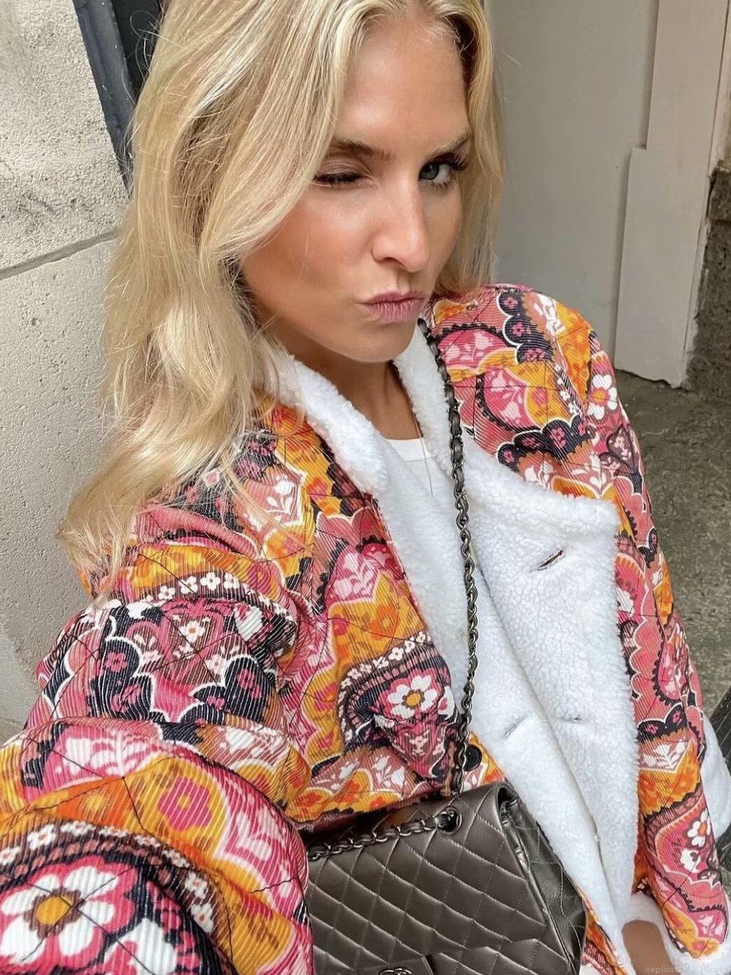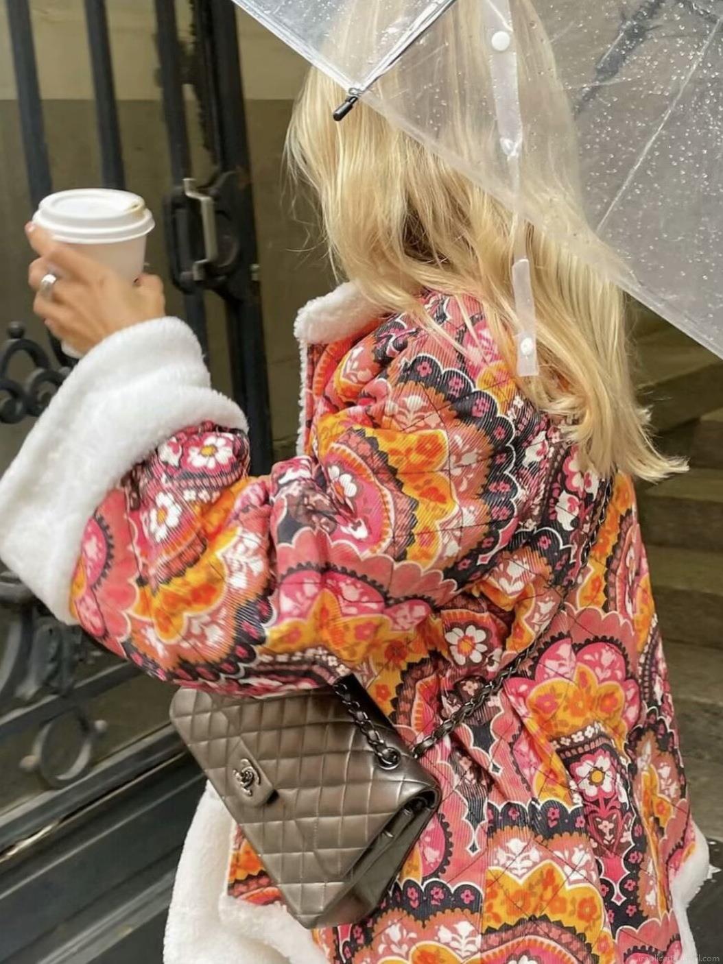 • Women's Vintage Bohemian Floral Print Padded Jacket Quilted Winter Outerwear With Faux Lamb Wool Trim Long Sleeve Button Up Coat