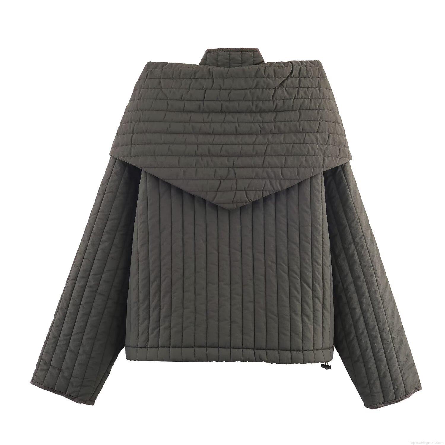 • Women's Vintage Quilted Padded Jacket With Detachable Scarf Tie Collar Snap Button Long Sleeve Polyester Cotton Blend Winter Coat For Women