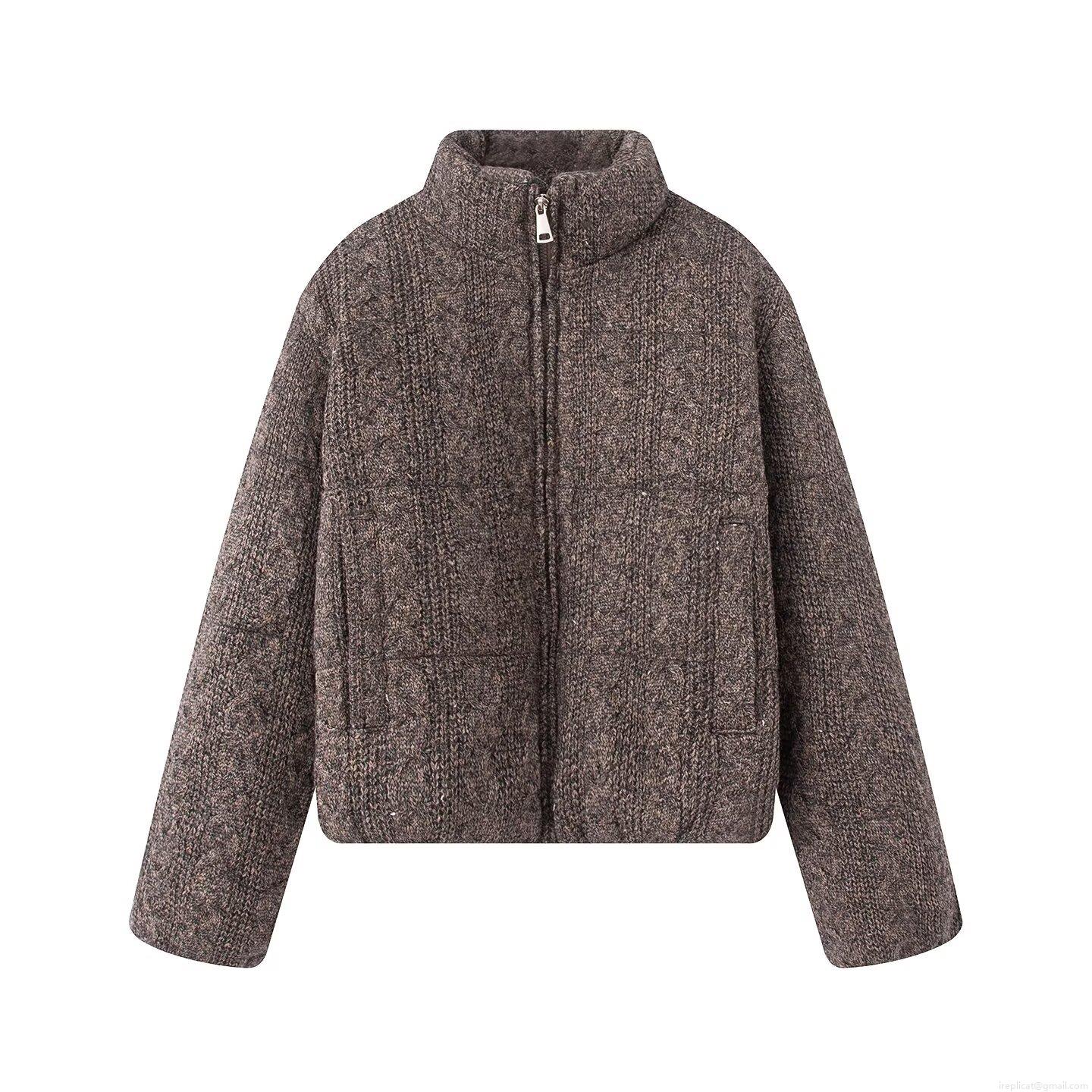 • Women's Winter Cable Knit Puffer Jacket Thick Warm Stand Collar Zipper Quilted Outerwear Casual Fashion Knitted Bread Coat Ladies Heavyweight Cotton Padded Jacket