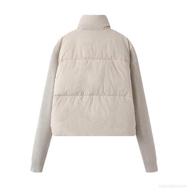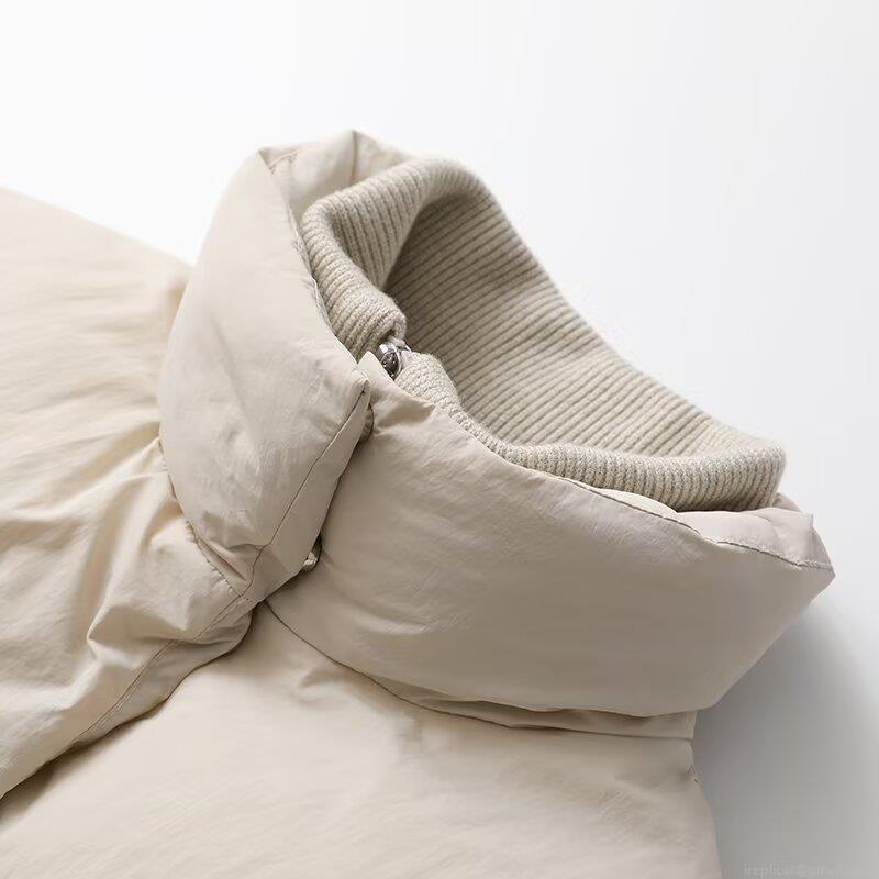 • Women's Winter Casual Knit Patchwork Padded Jacket Stand Collar Windproof Warm Cotton Puffer Coat Fashion Beige Black Outerwear For Ladies