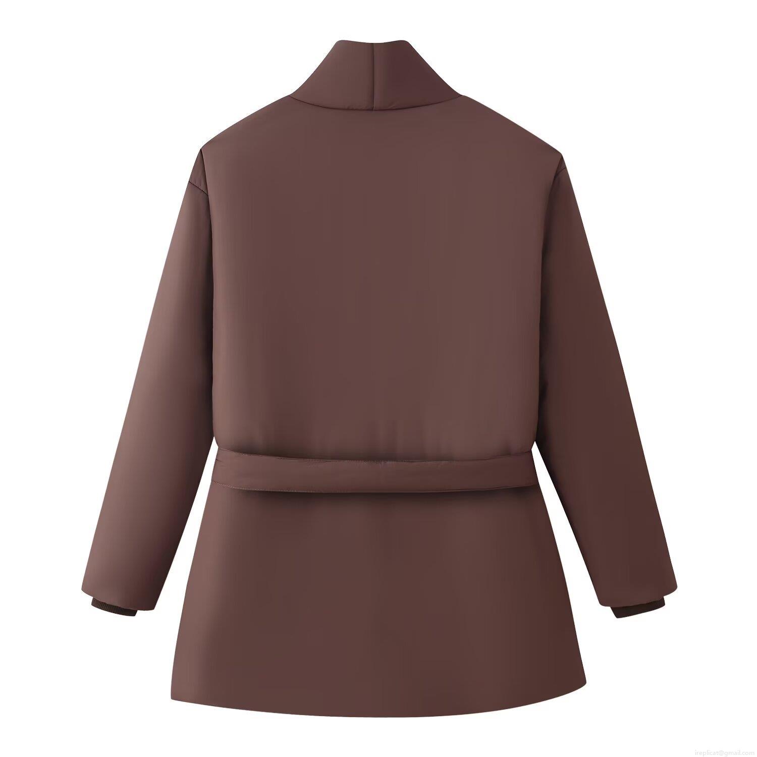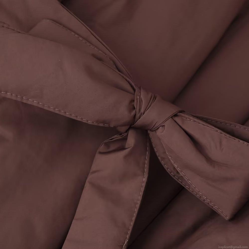 • Women's Winter Casual Loose Padded Jacket With Bow Tie Belt Long Sleeve Mid-Length Warm Polyester Coat For Women Daily Wear