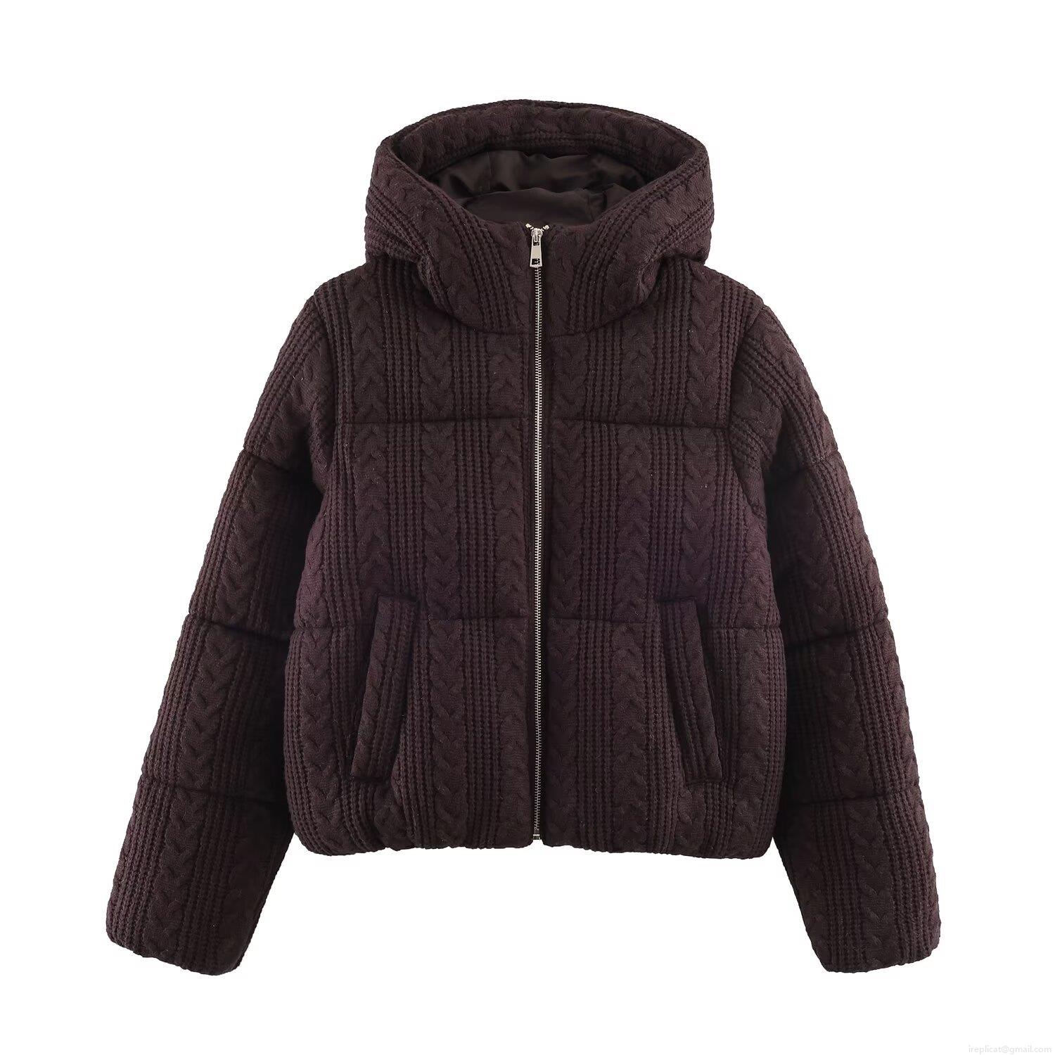 • Women's Winter Fashion Casual Cable Knit Texture Hooded Cotton-Padded Jacket Loose Short Puffer Coat With Full Zip And Pockets Ladies Warm Outerwear