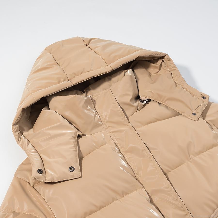 • Women's Winter Glossy Puffer Jacket Hooded Windproof Cotton Coat With Belt Solid Color Warm Quilted Outerwear For Ladies Casual Fashion
