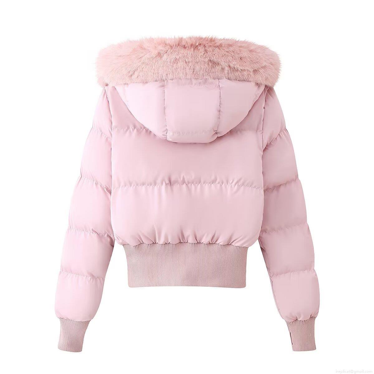 • Women's Winter Hooded Cotton Padded Jacket With Faux Fur Collar Knit Patchwork Thumb Hole Cuffs Windproof Warm Loose Fit Coat