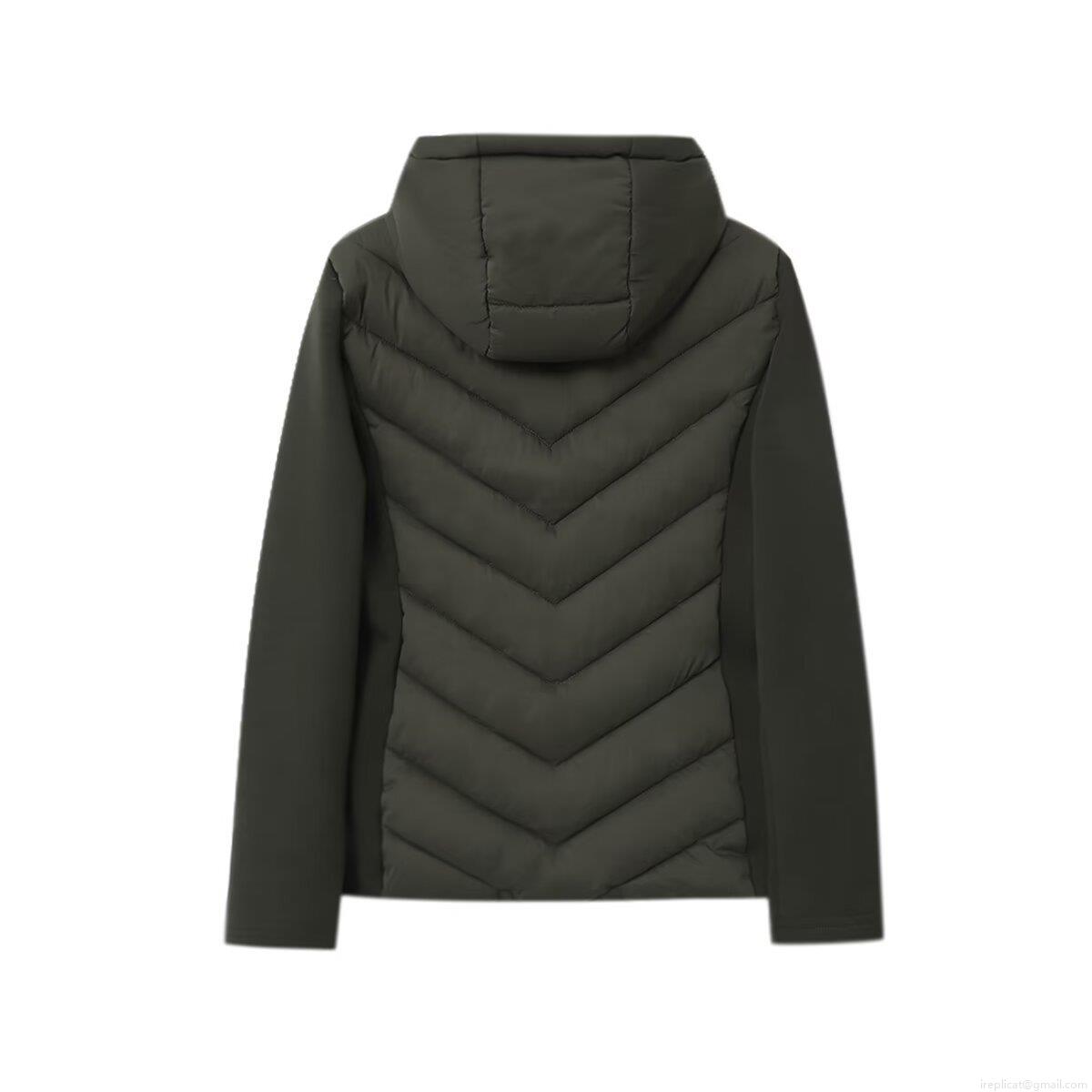 • Women's Winter Hooded Spliced Puffer Jacket Warm Polyester Shell Synthetic Cotton Filling Coat With Drawstring Pockets Street Style Windproof Outerwear