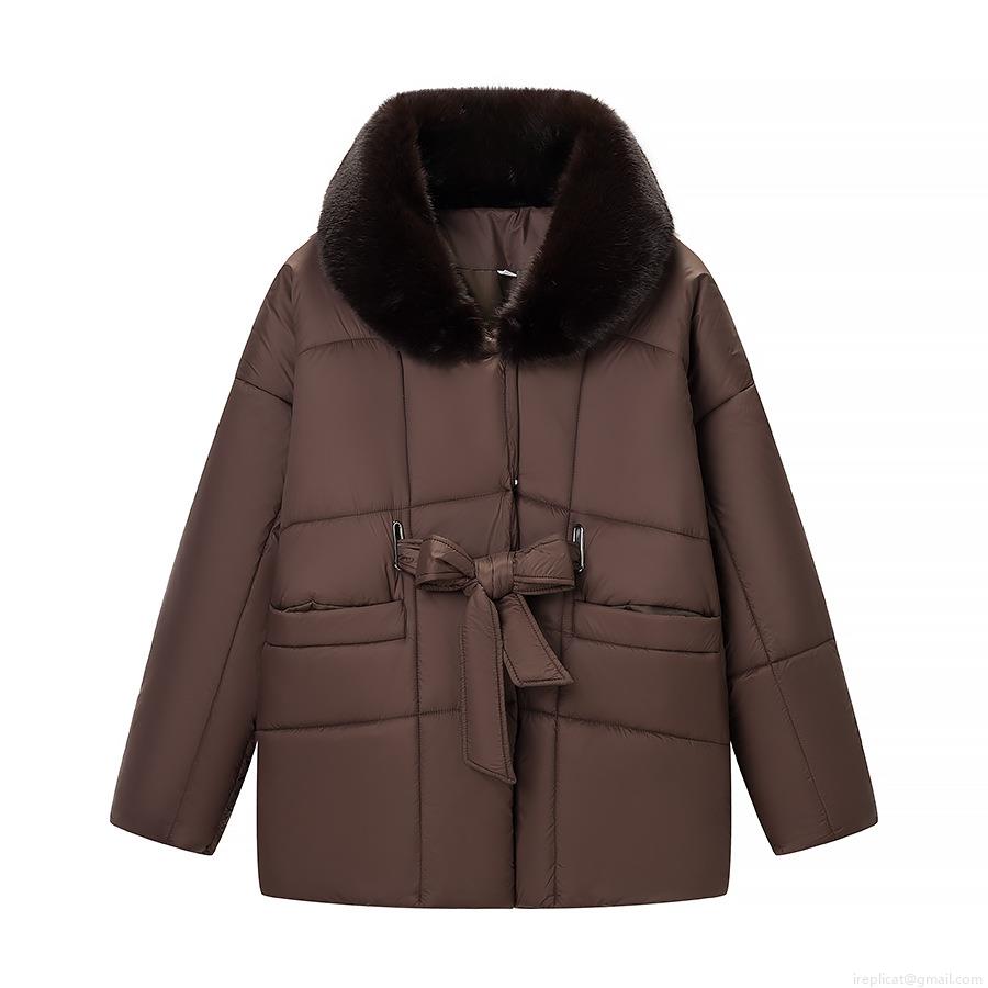 • Women's Winter Padded Jacket With Detachable Faux Fur Collar Quilted Slim Waist Tie-Up Coat Long Sleeve Thick Streetwear Outwear Brown Black