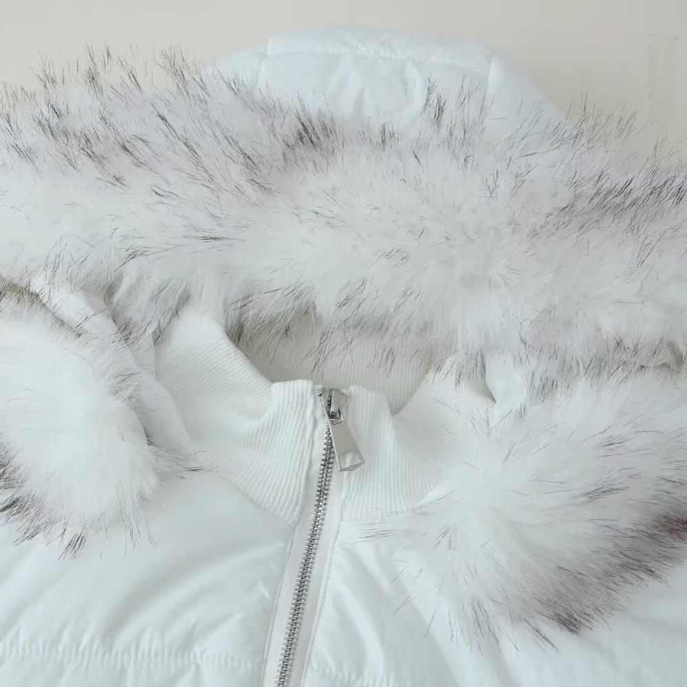 Solid Color, Quilting, Hood, Large Fur Collar, Glossy Material