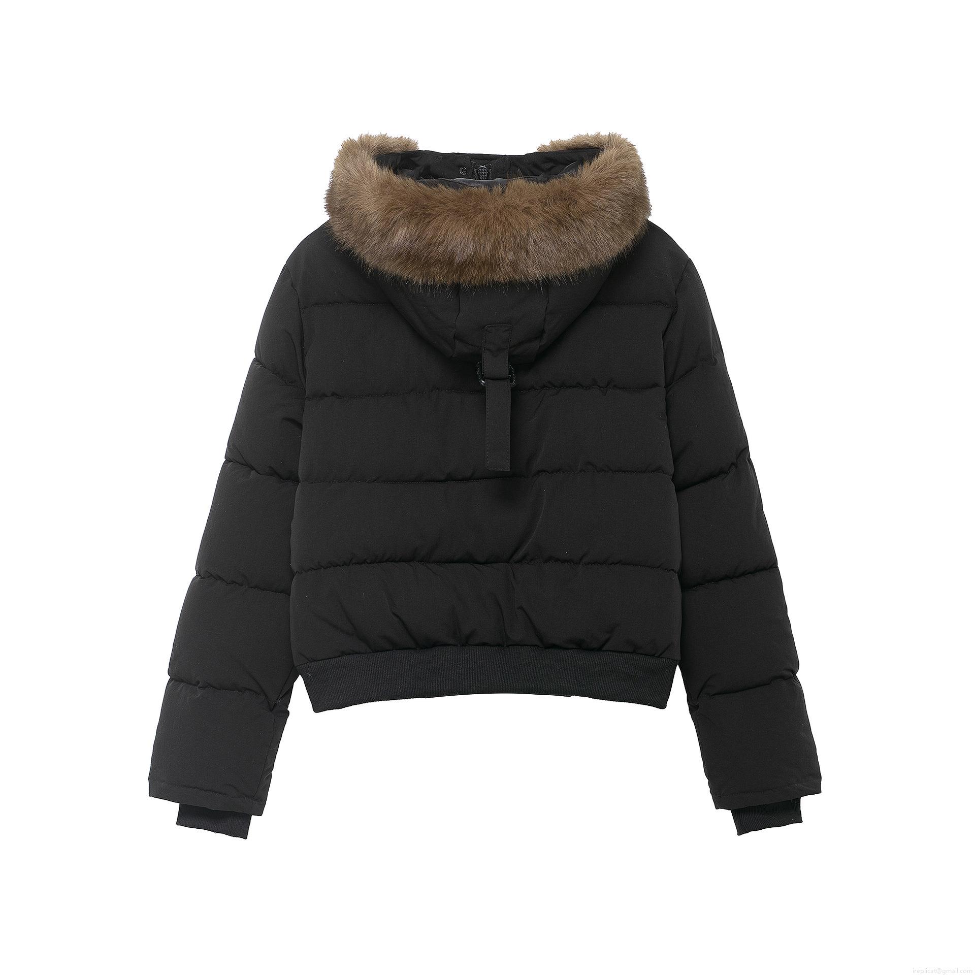 • Women's Winter Puffer Jacket With Faux Fur Trim Hooded Thick Warm Polyester Cotton Padded Coat Solid Color Loose Streetwear Outerwear For Women