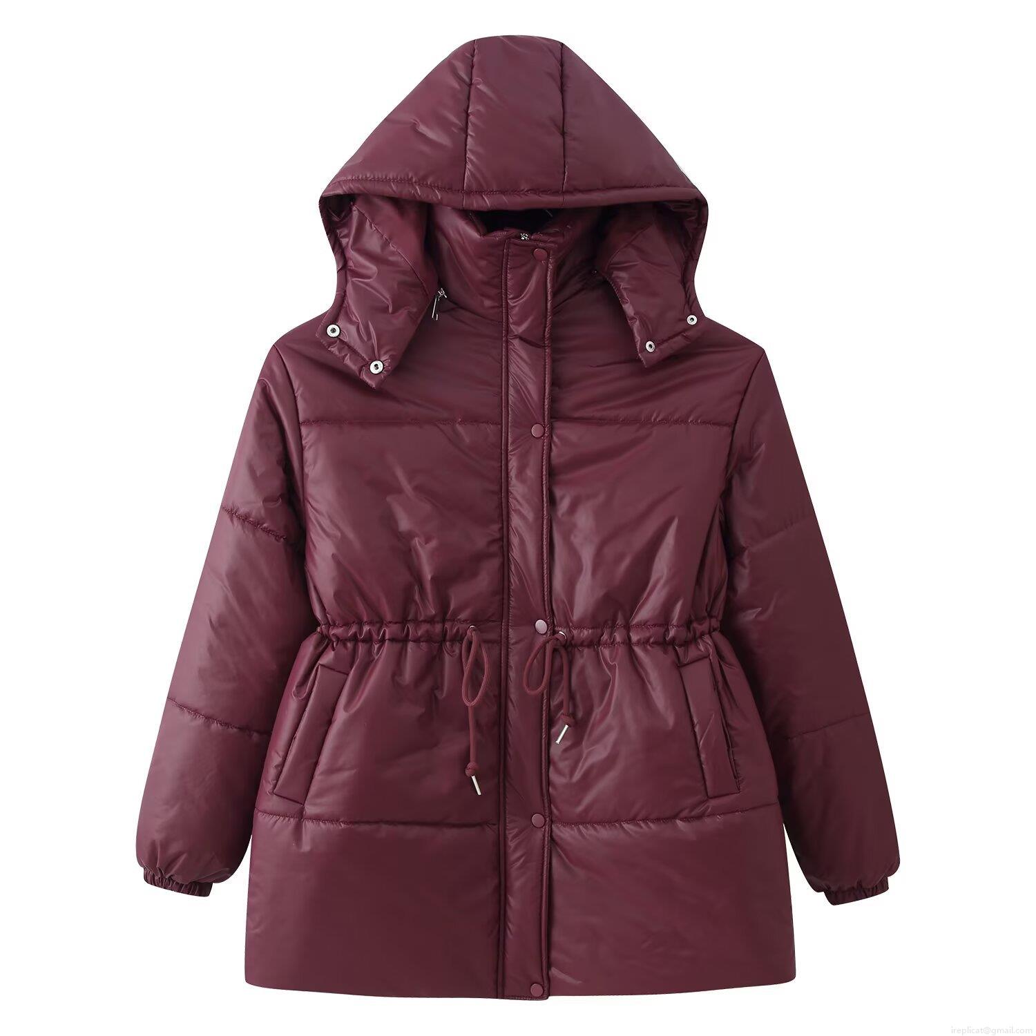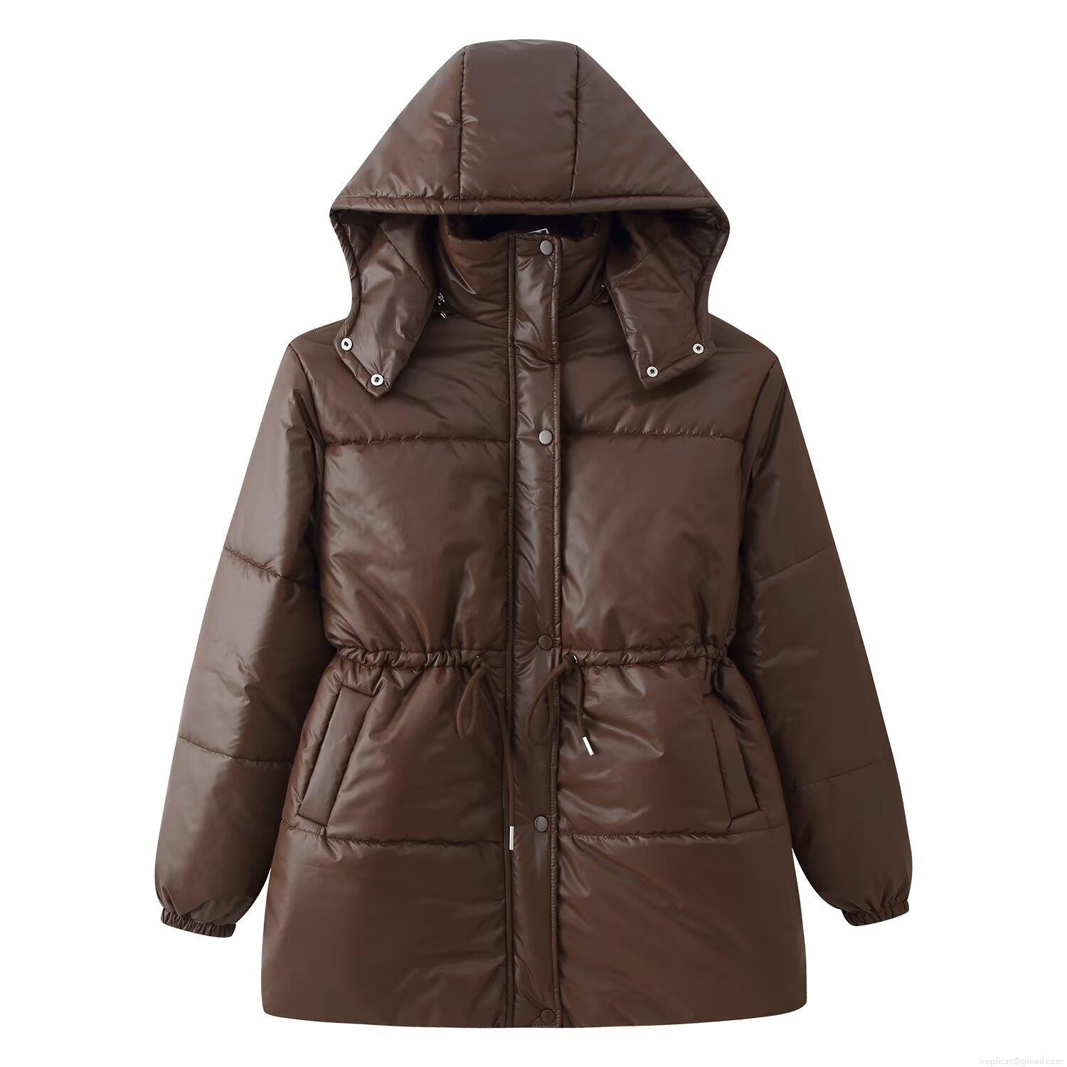 • Women's Winter Puffer Padded Jacket Mid-Length Hooded Long Sleeve Outerwear With Waist Drawstring Street Style Windproof Warm Coat Zipper Button Closure
