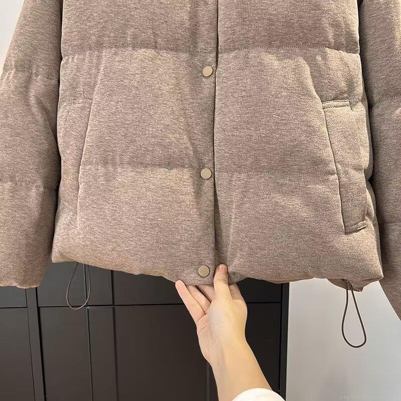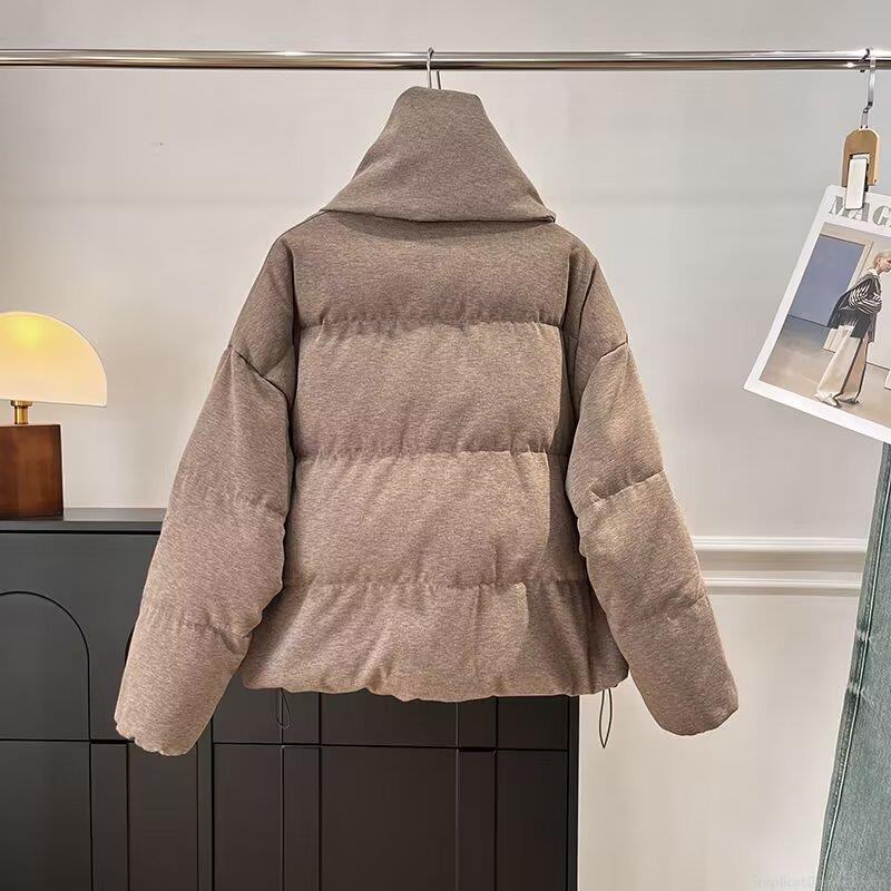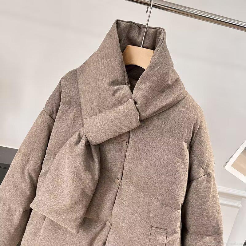 • Women's Winter Puffy Padded Jacket With Detachable Scarf Solid Color Quilted Warm Thick Cotton Coat Loose Casual Outerwear Camel