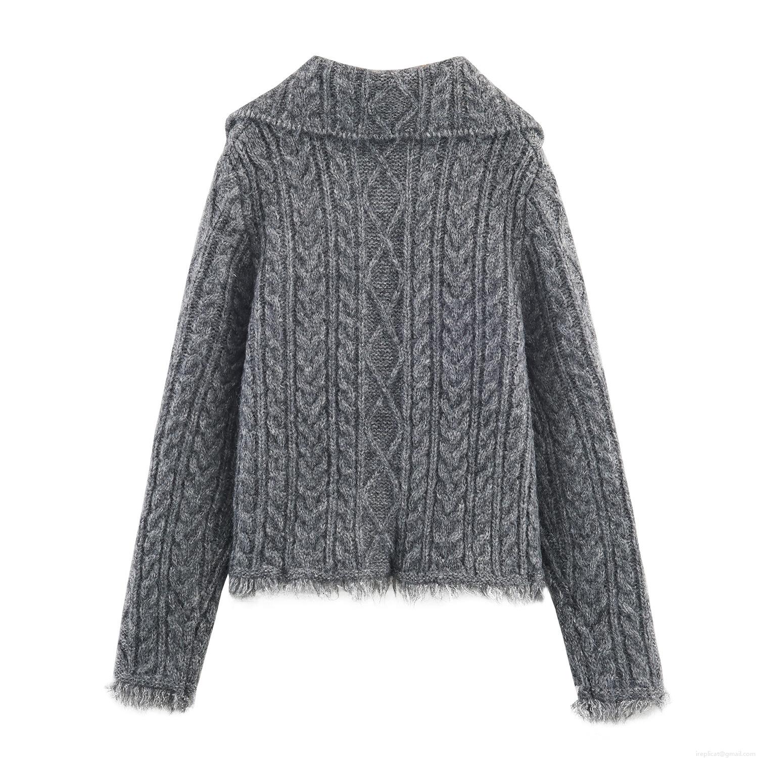 • Women's Retro Cable Knit Cardigan Sweater Lapel Long Sleeve Button Down Jacket With Tassel Trim Solid Color Casual Loose Knitted Outerwear For Autumn Winter