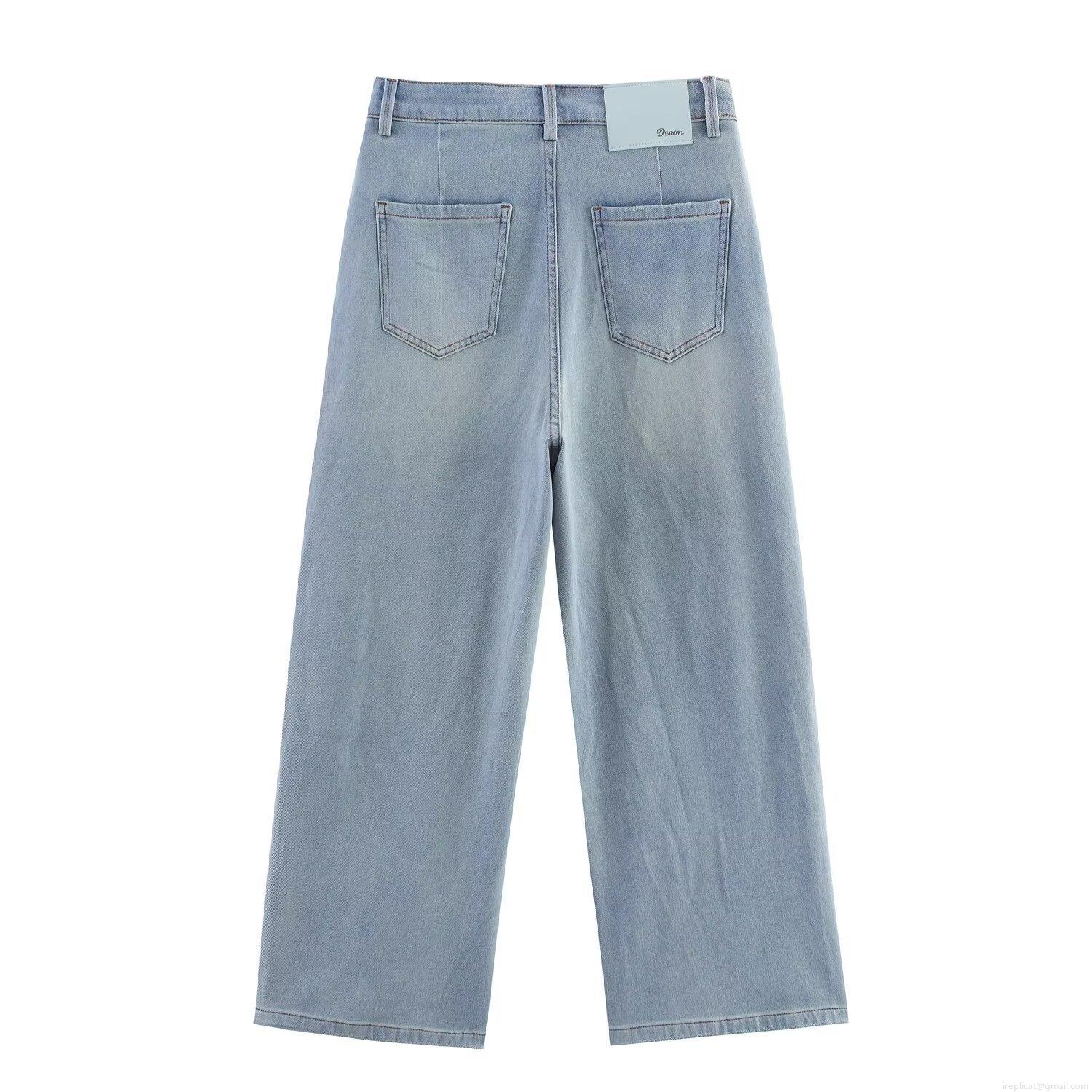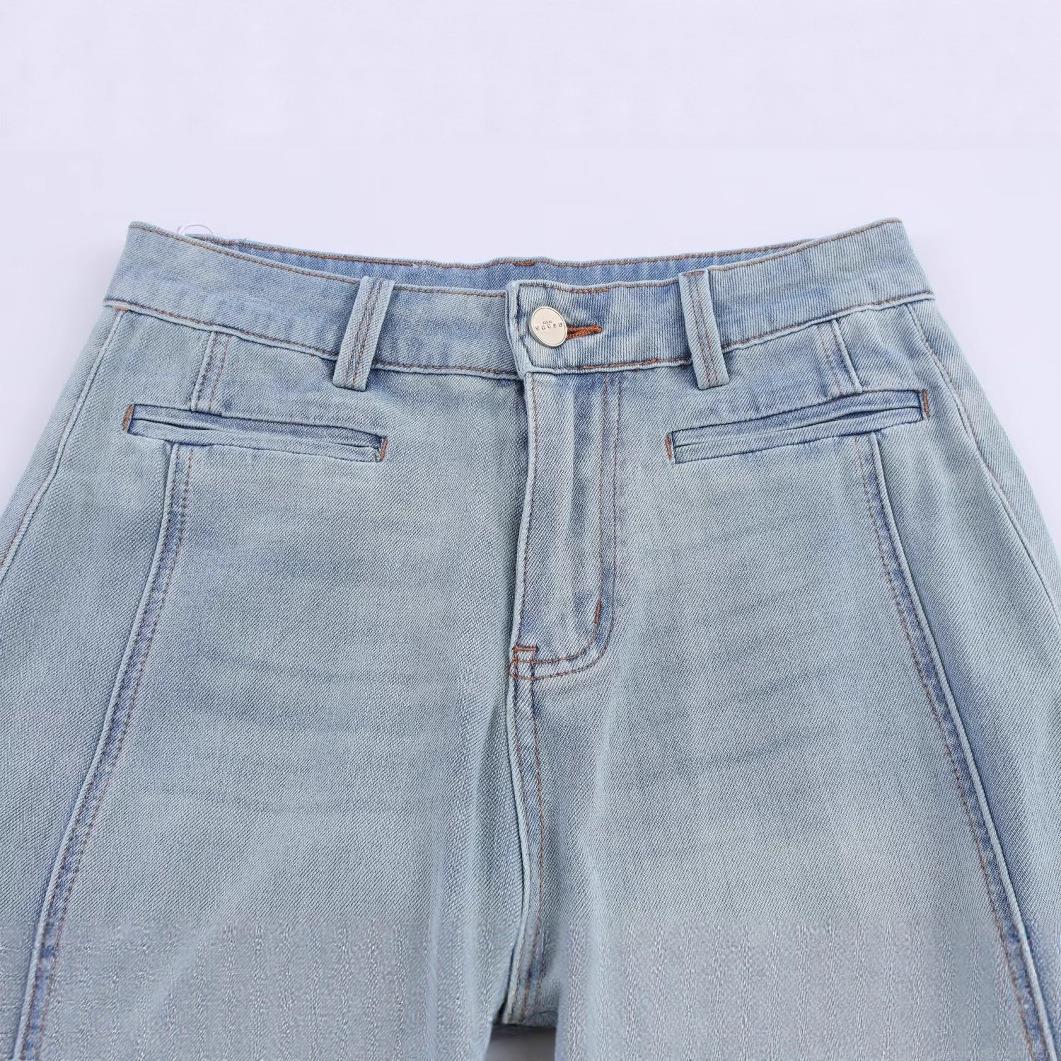 Solid Color, Zipper, Straight Tube, Exposed Wiring, High-waisted, Washed Texture